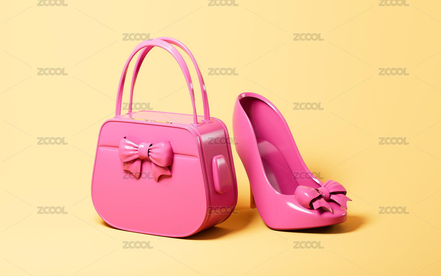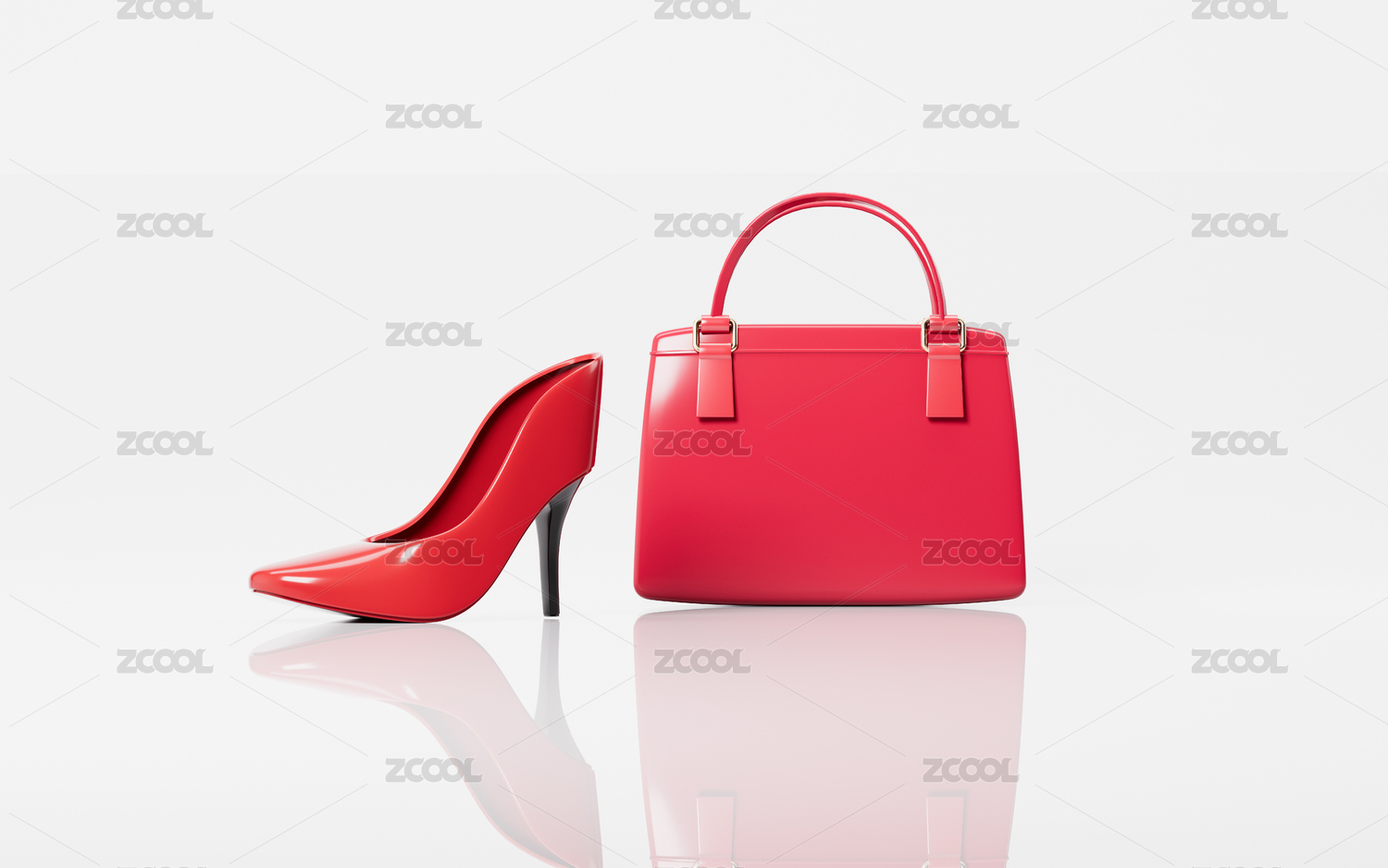 高跟鞋和女士手提包3D渲染