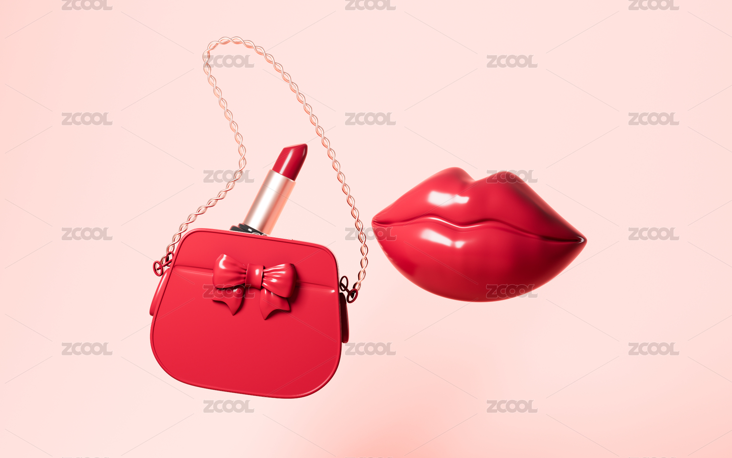 女士手提包和嘴唇口紅模型3D渲染