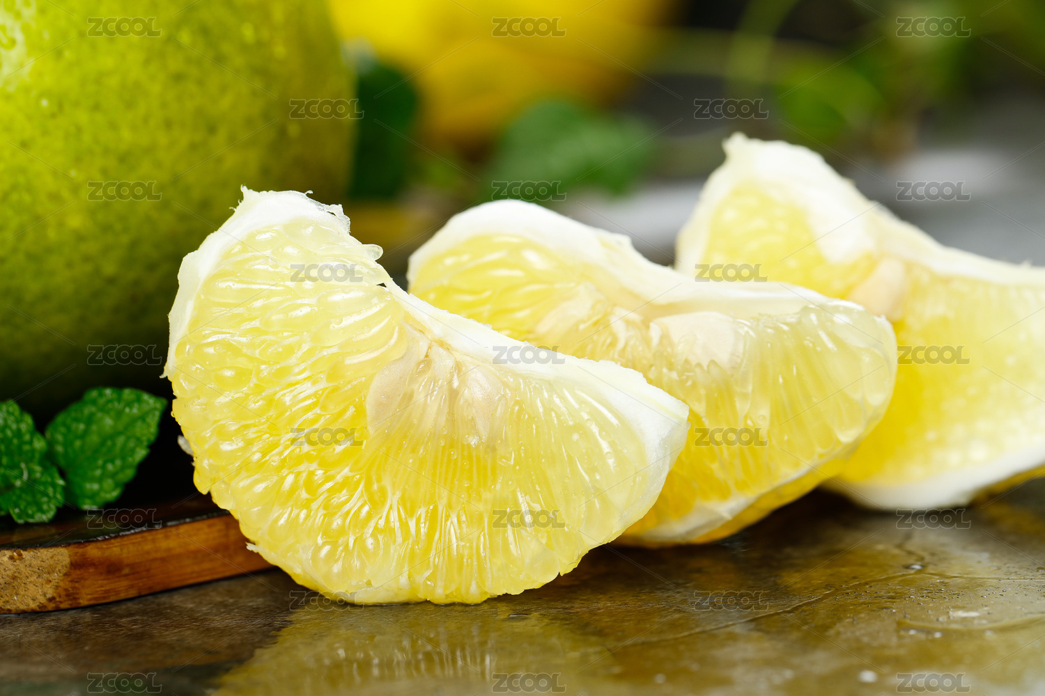 一堆臺灣青柚和半邊切面青柚