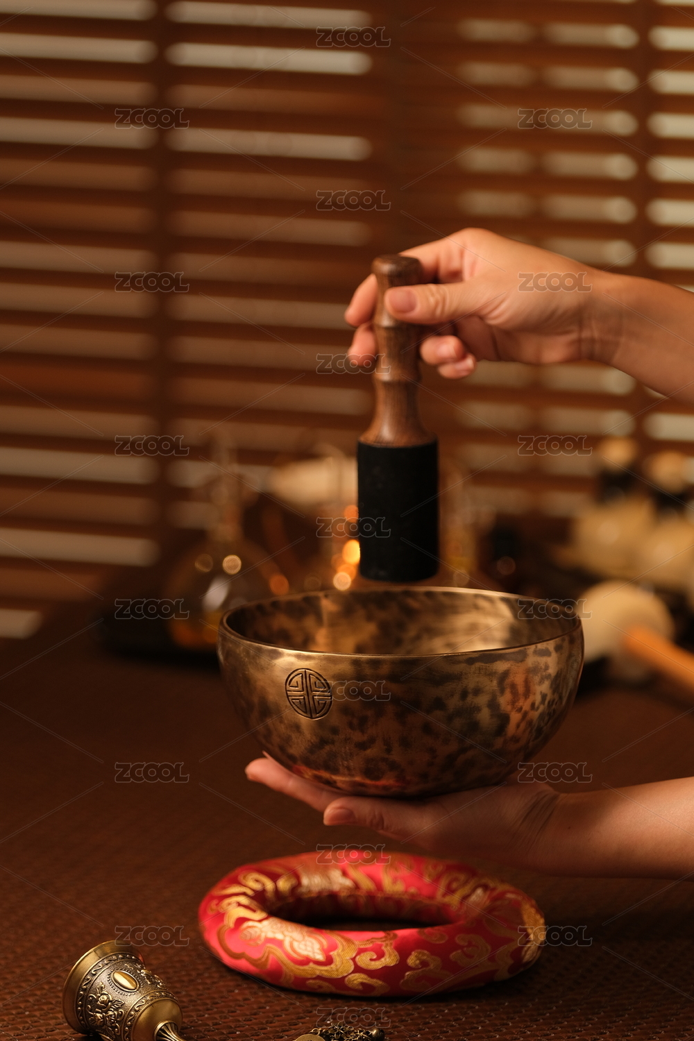 養(yǎng)生中的銅碗進(jìn)行鐳鉢共振展示
