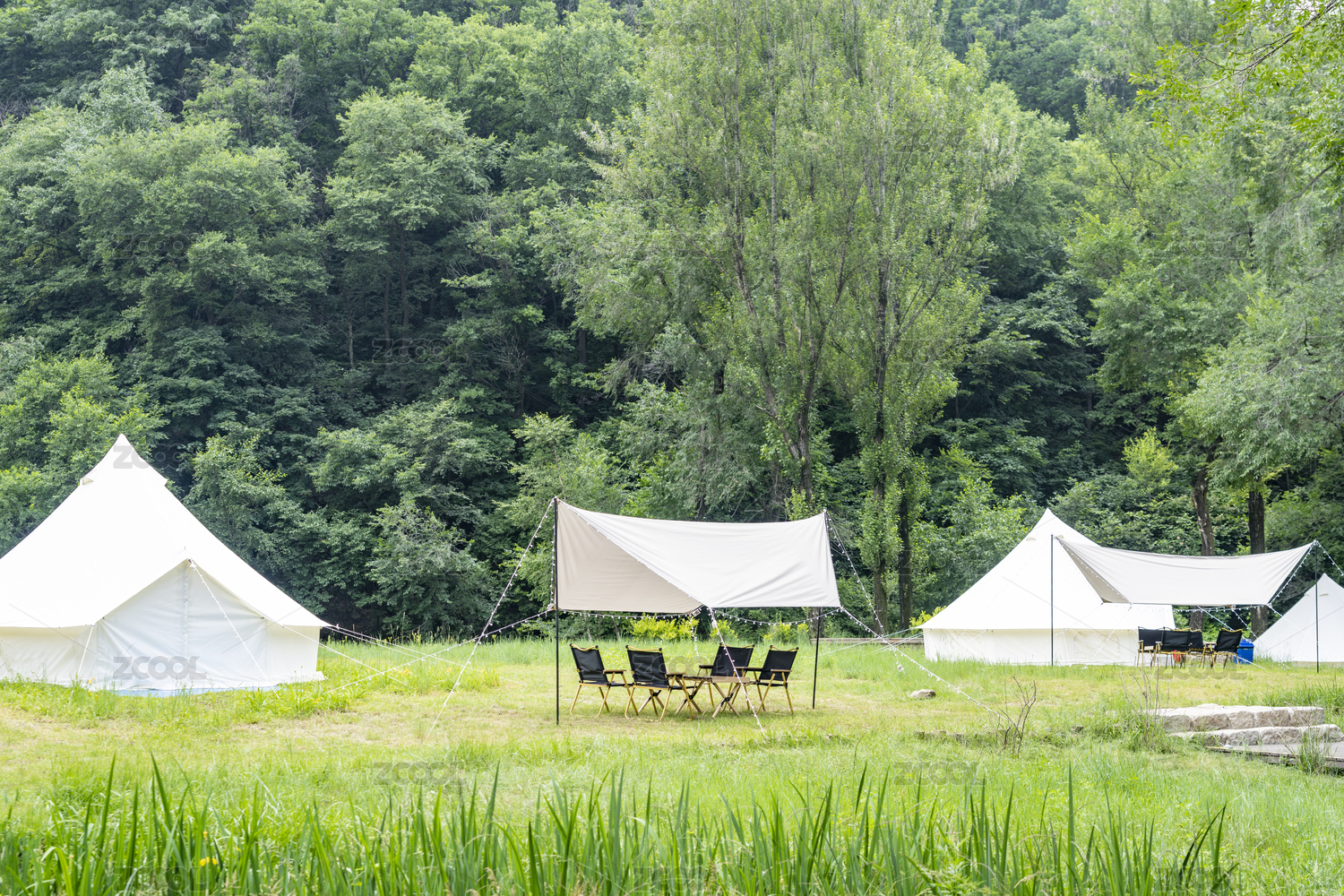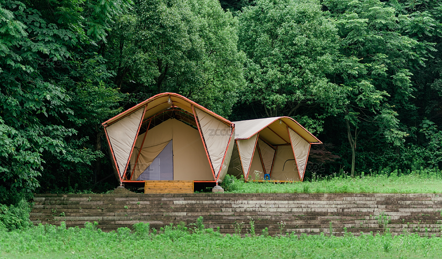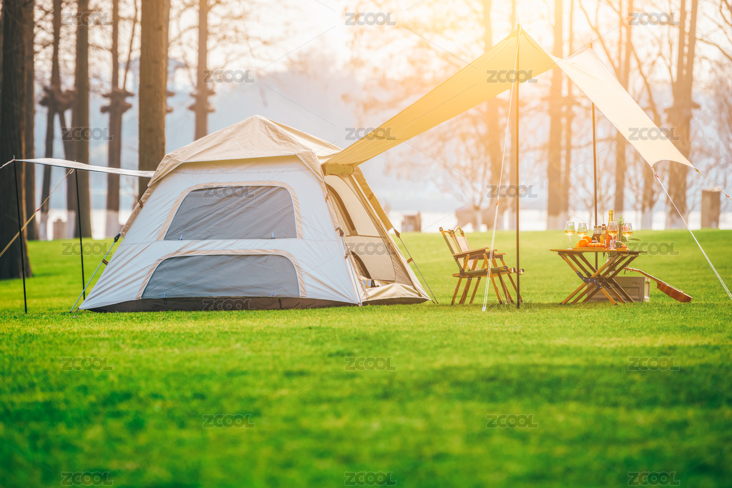 夏天樹(shù)林露營(yíng)帳篷