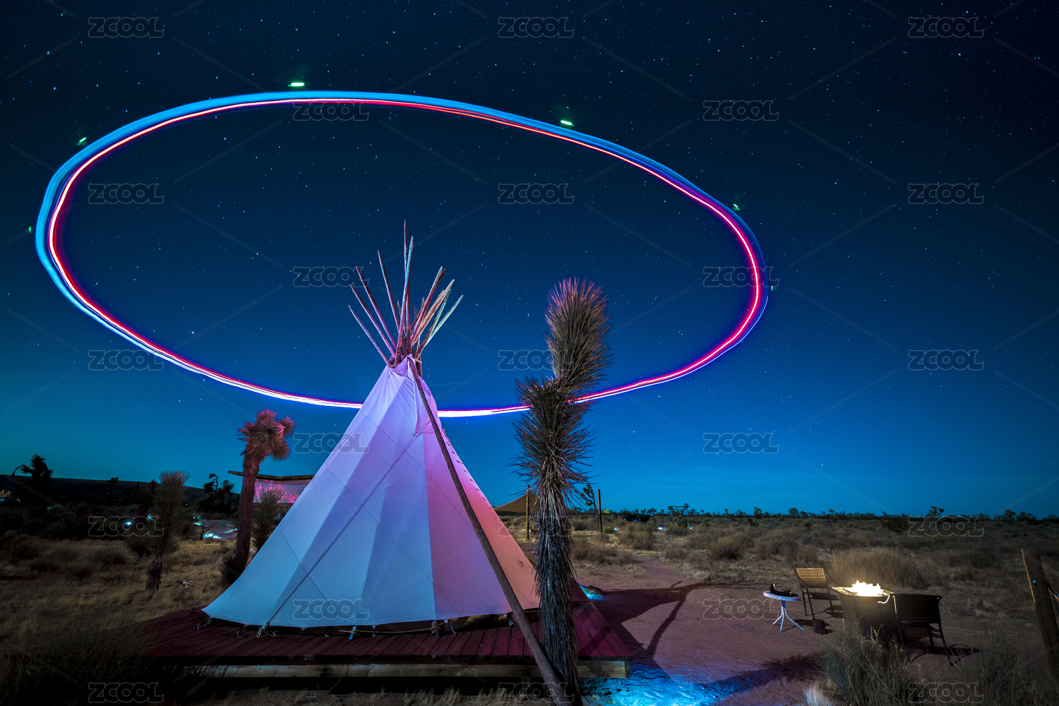 使用無(wú)人機(jī)創(chuàng)意長(zhǎng)曝光的印第安帳篷