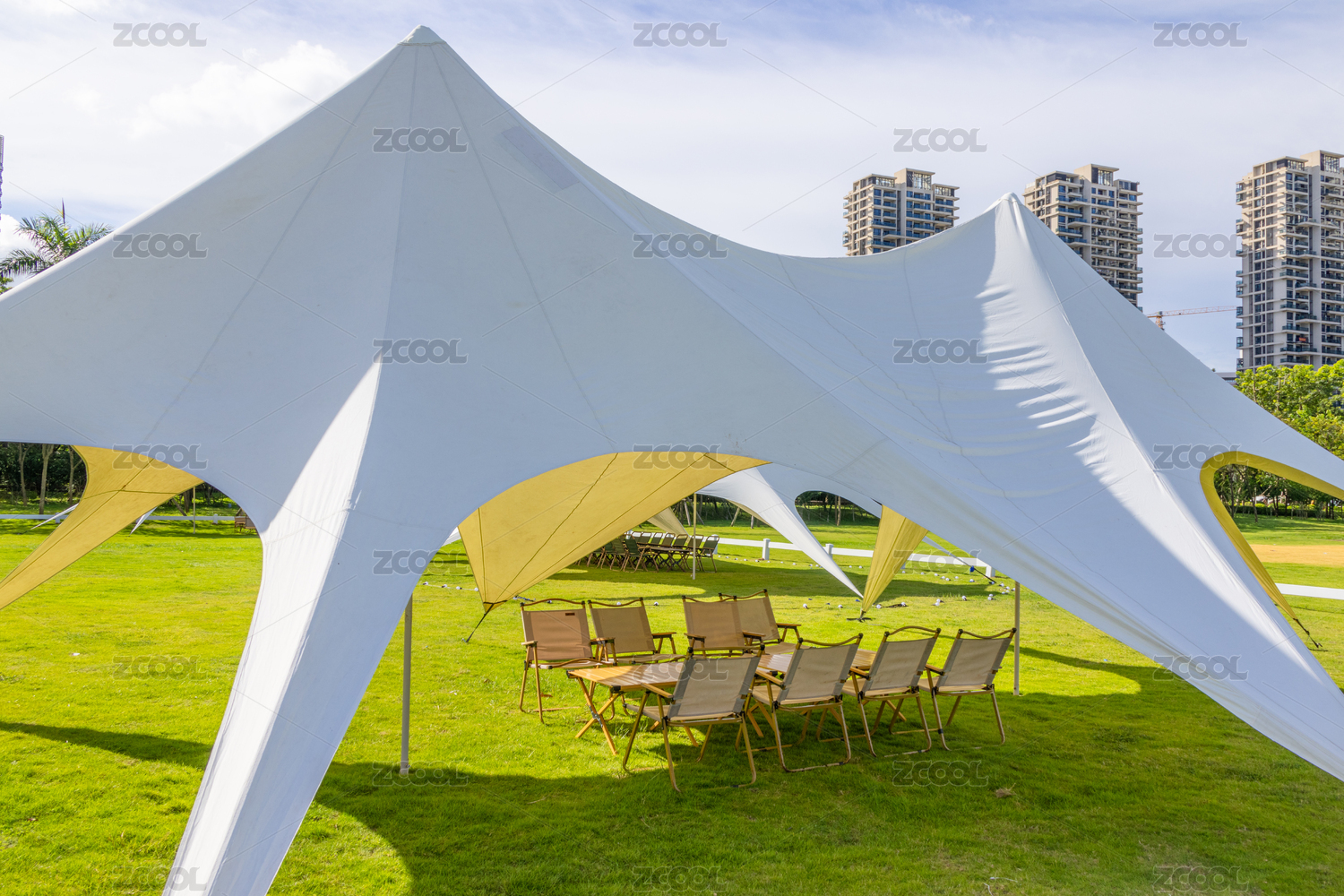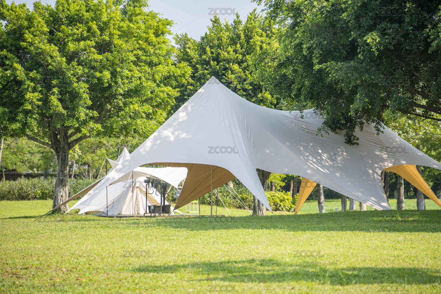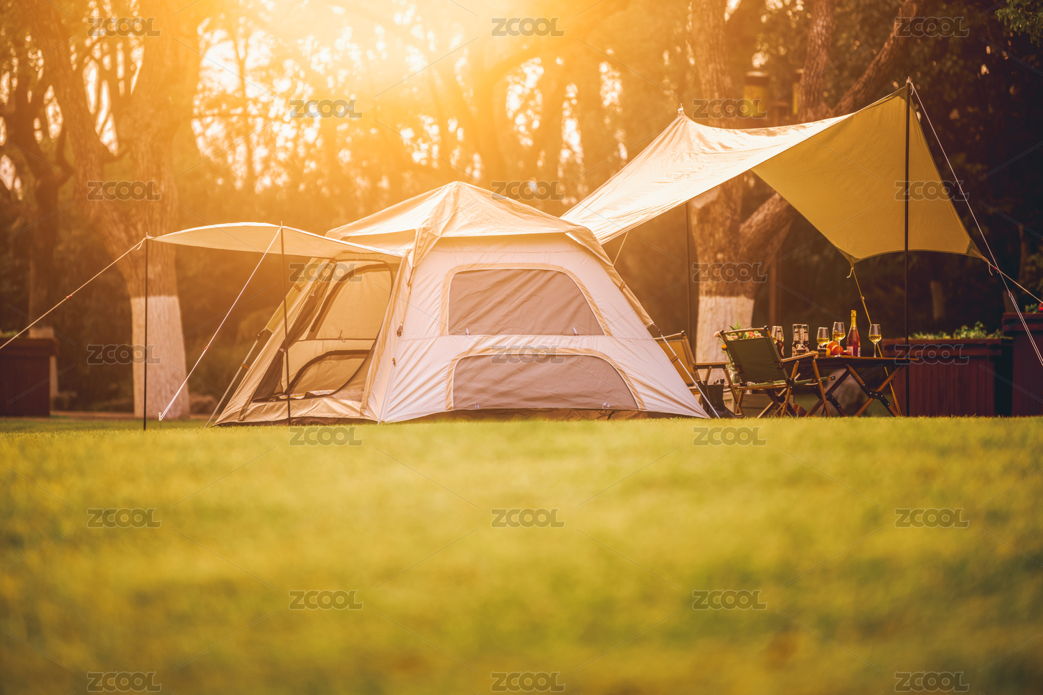 戶外公園里的露營(yíng)帳篷