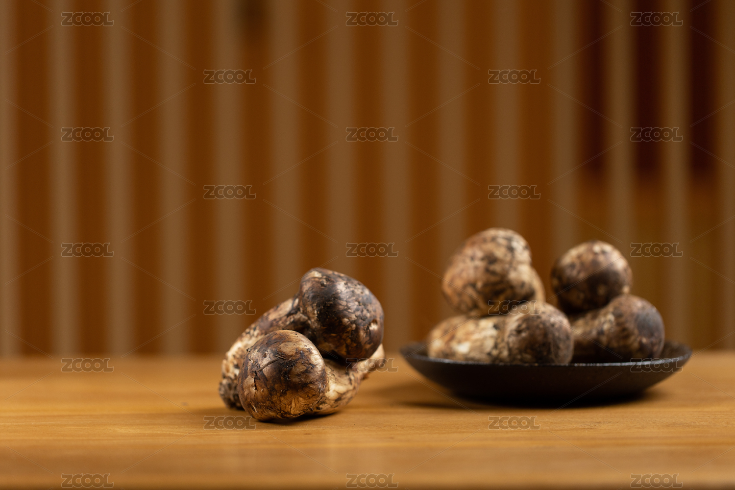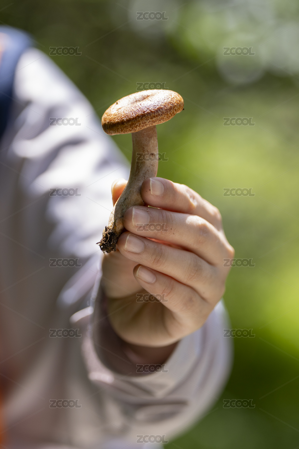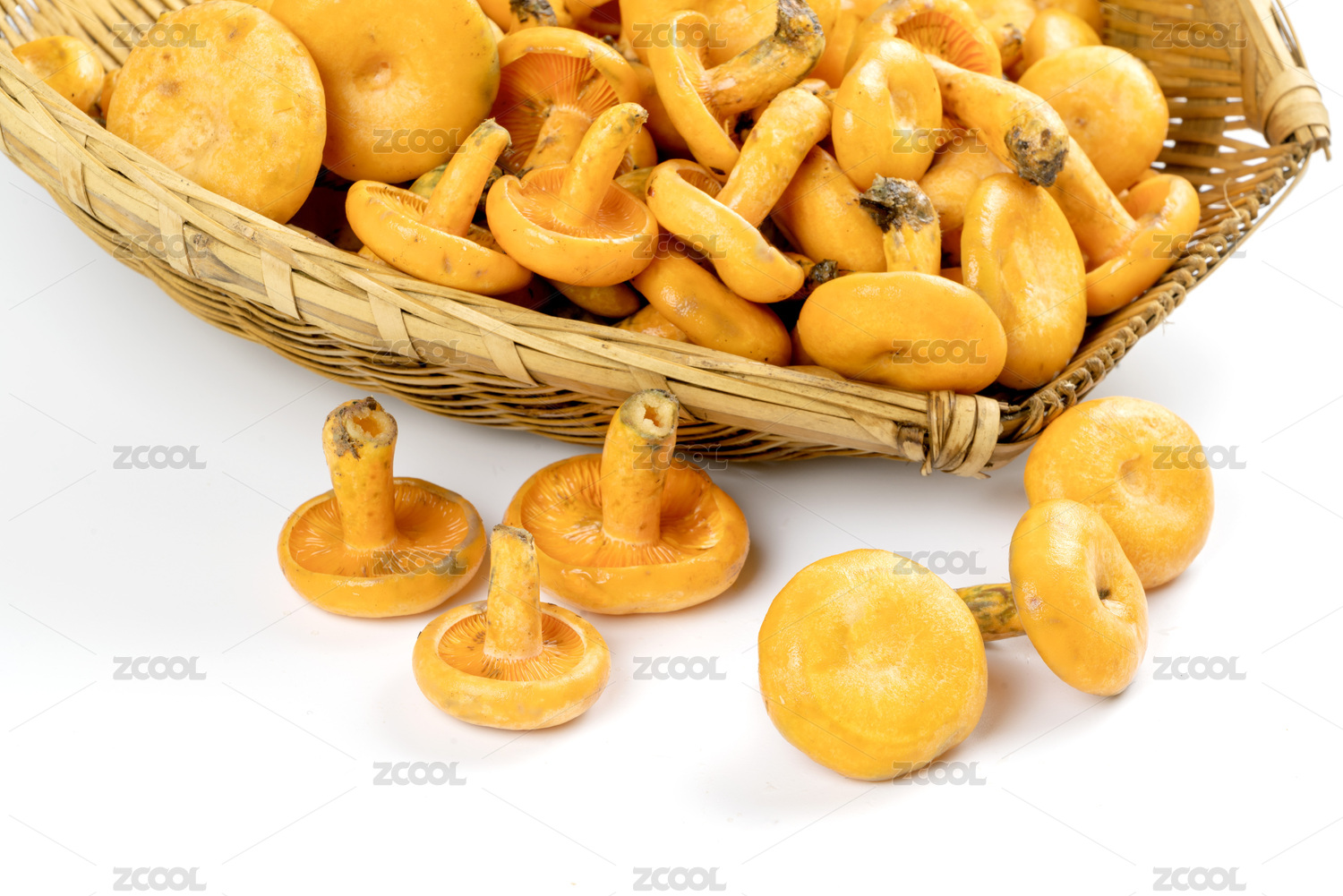 川西高原山林中采摘的金黃雞油菌和松菌特寫