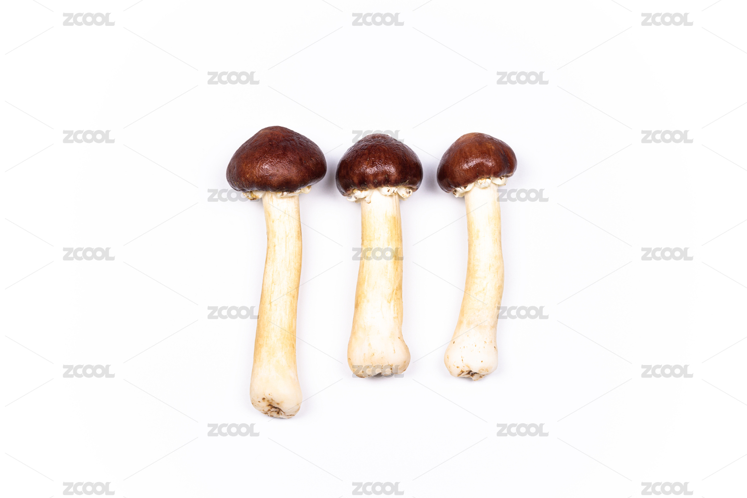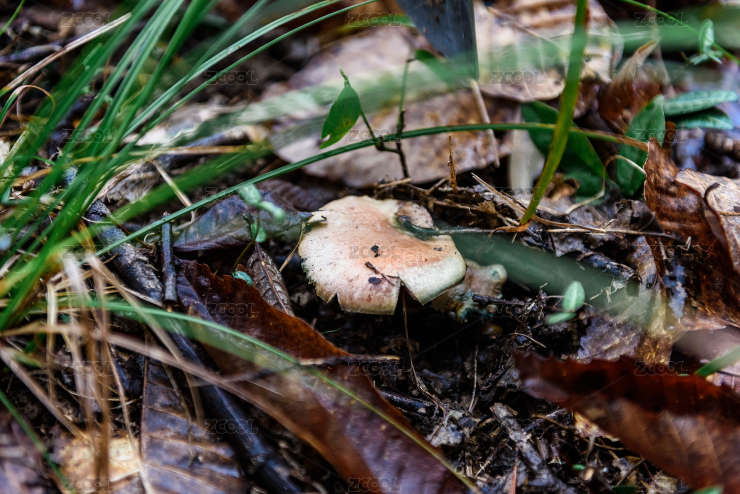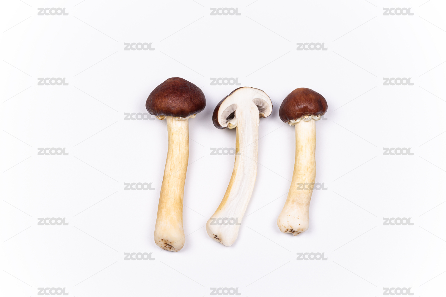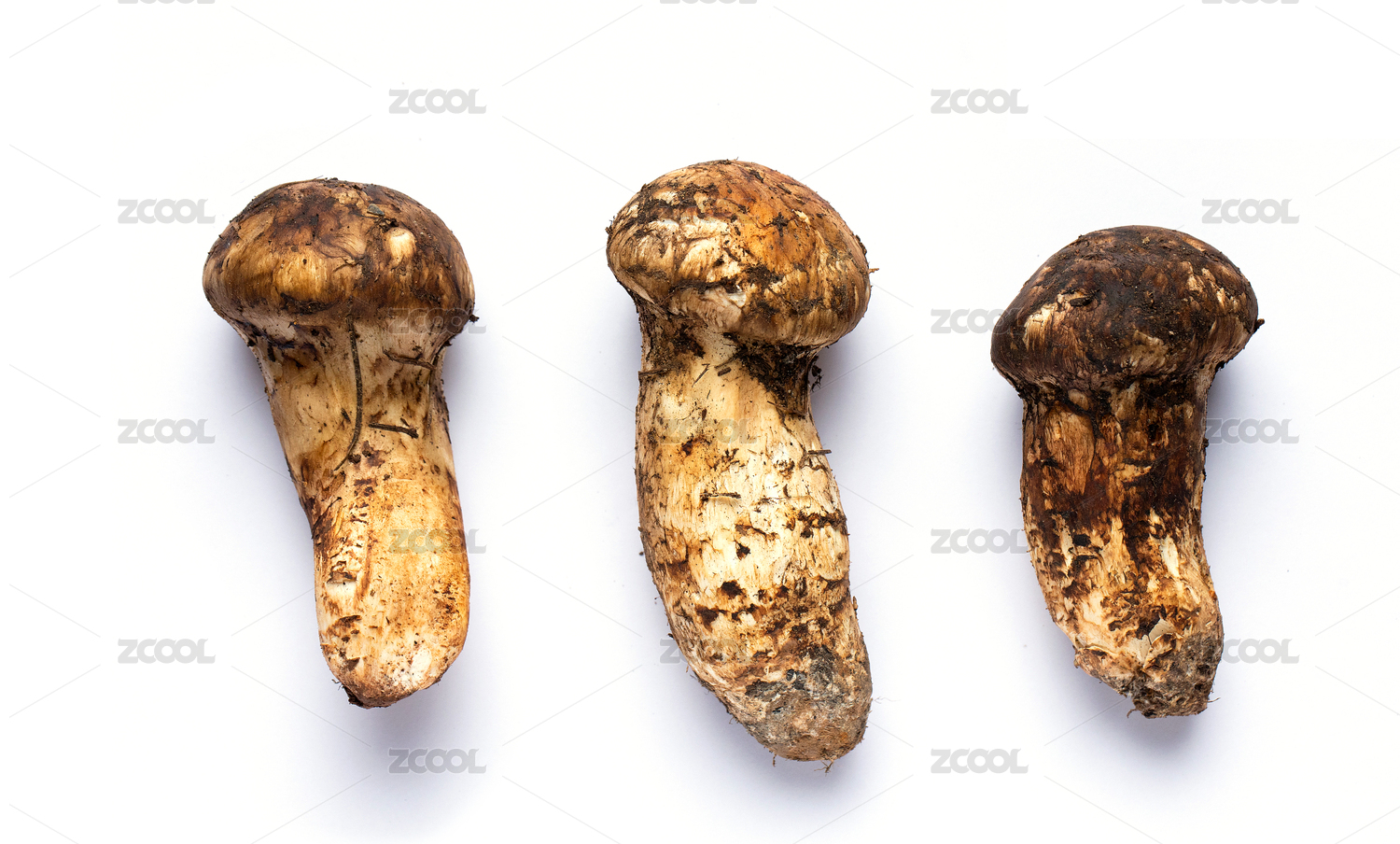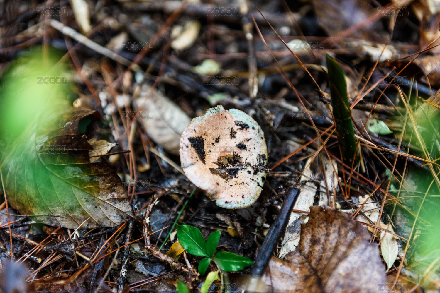 罕見的野生松菌蘑菇生長在戶外潮濕的枯葉叢中