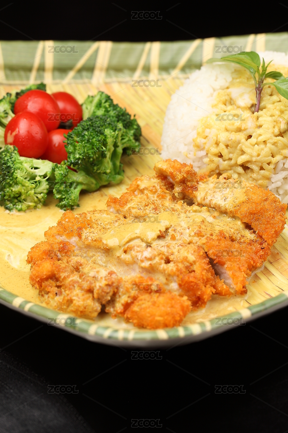 白碗里的咖喱雞炸雞排套飯