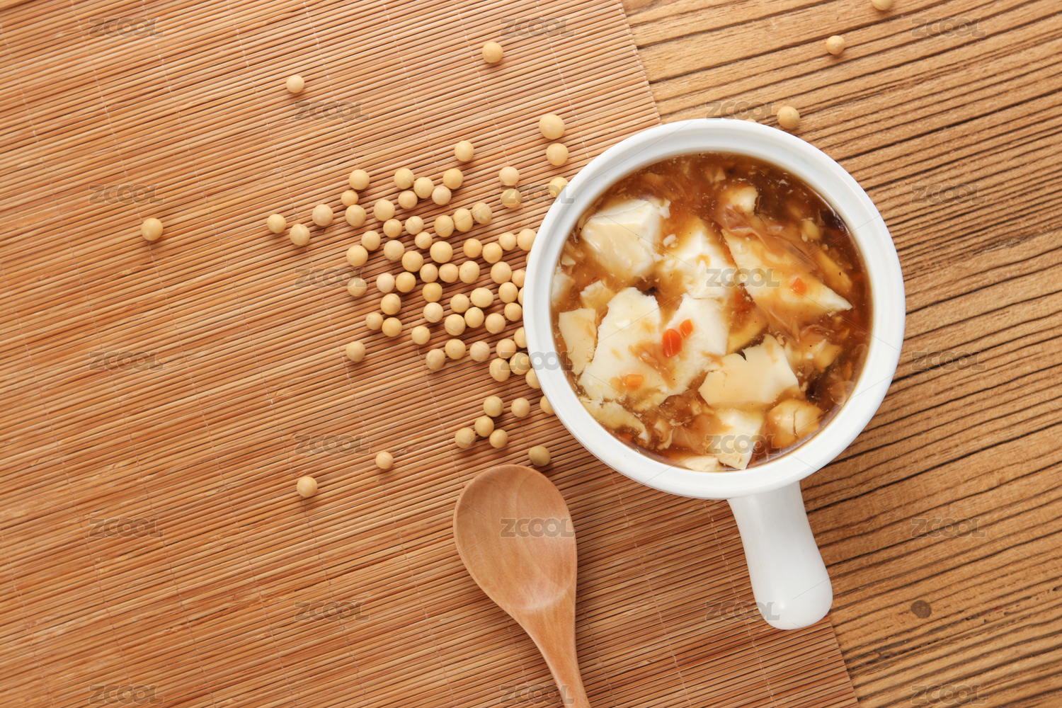 桌子上一碗豆花和黃豆
