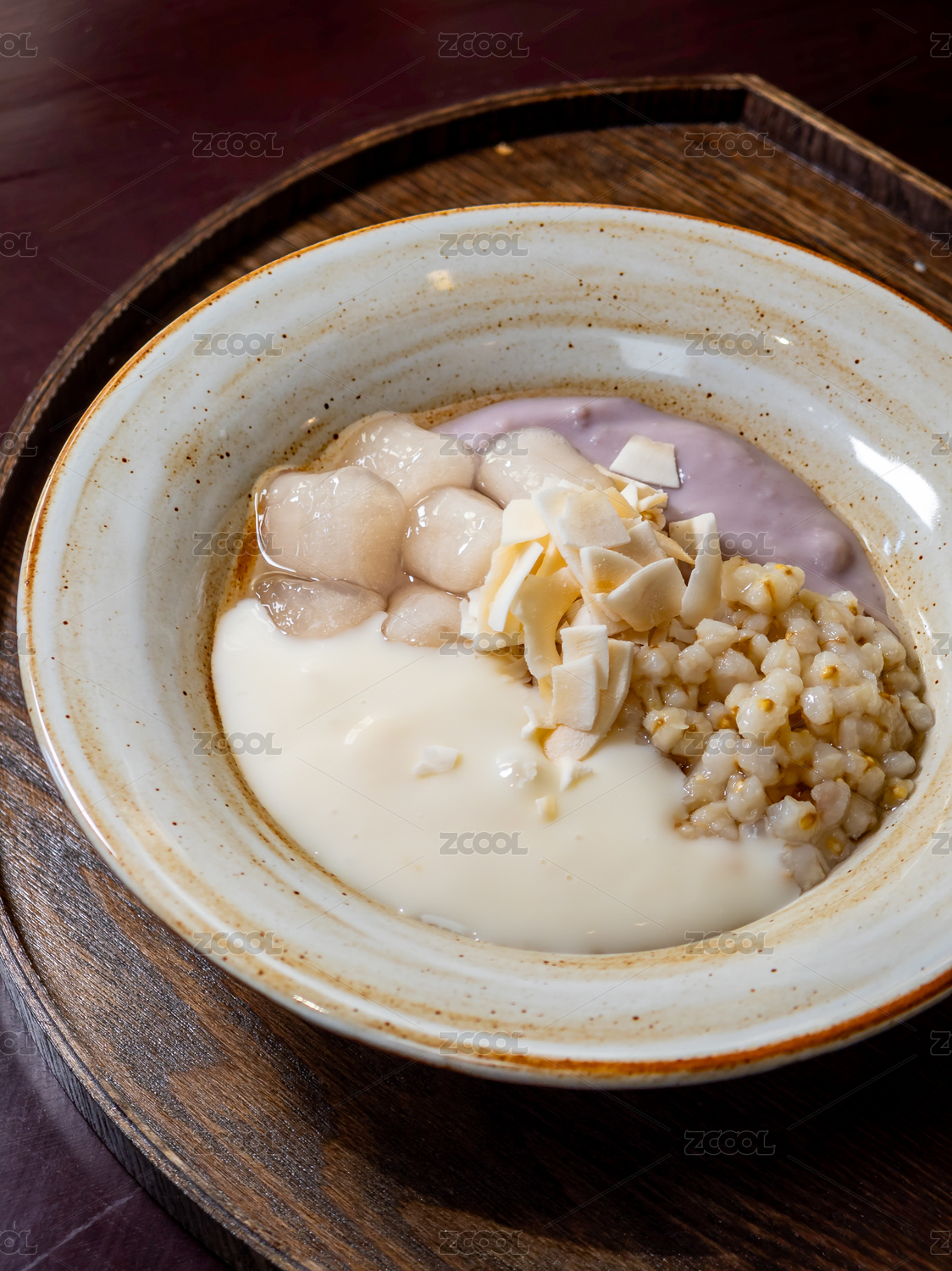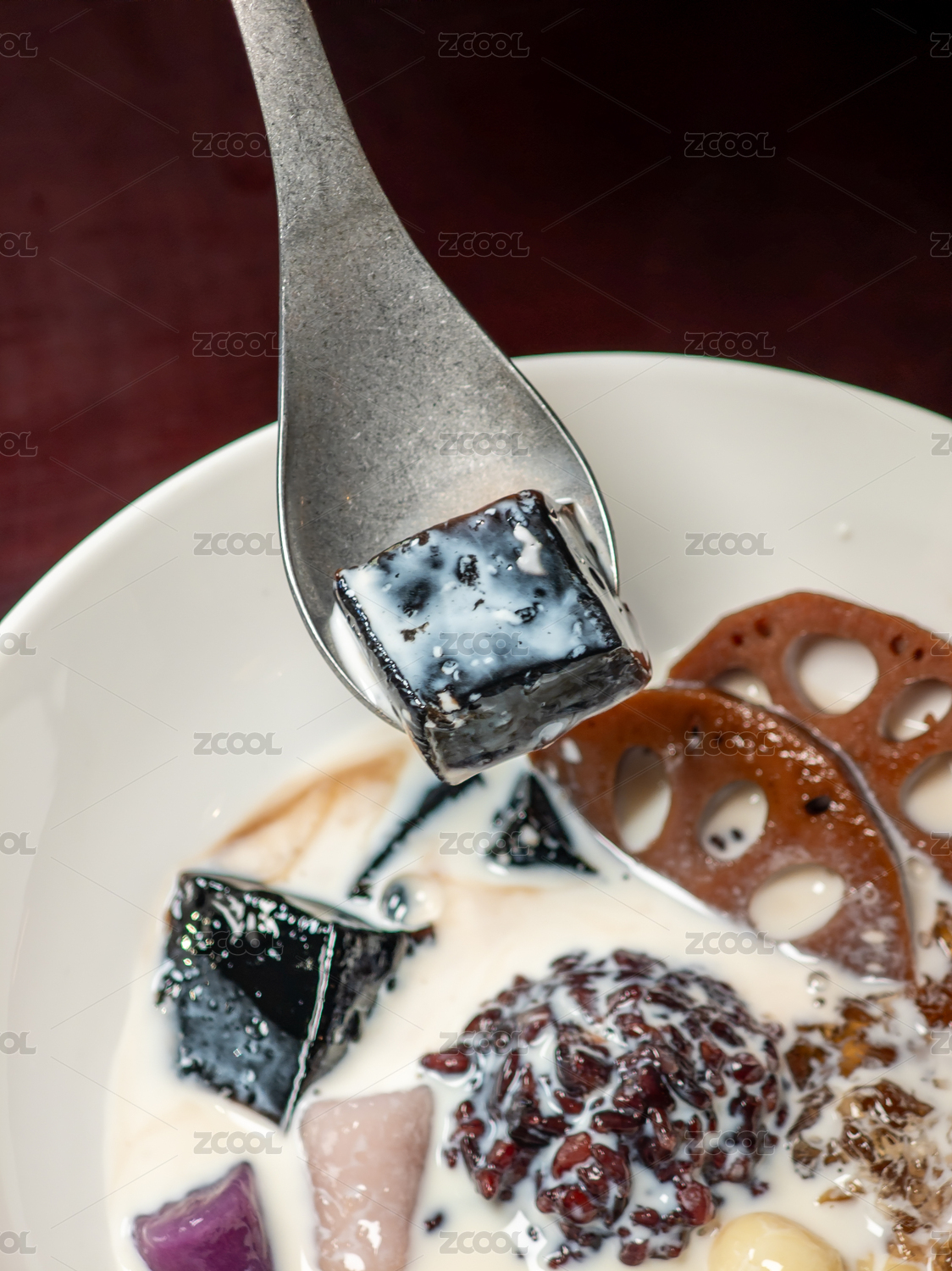 白色背景上的一碗芋圓豆花