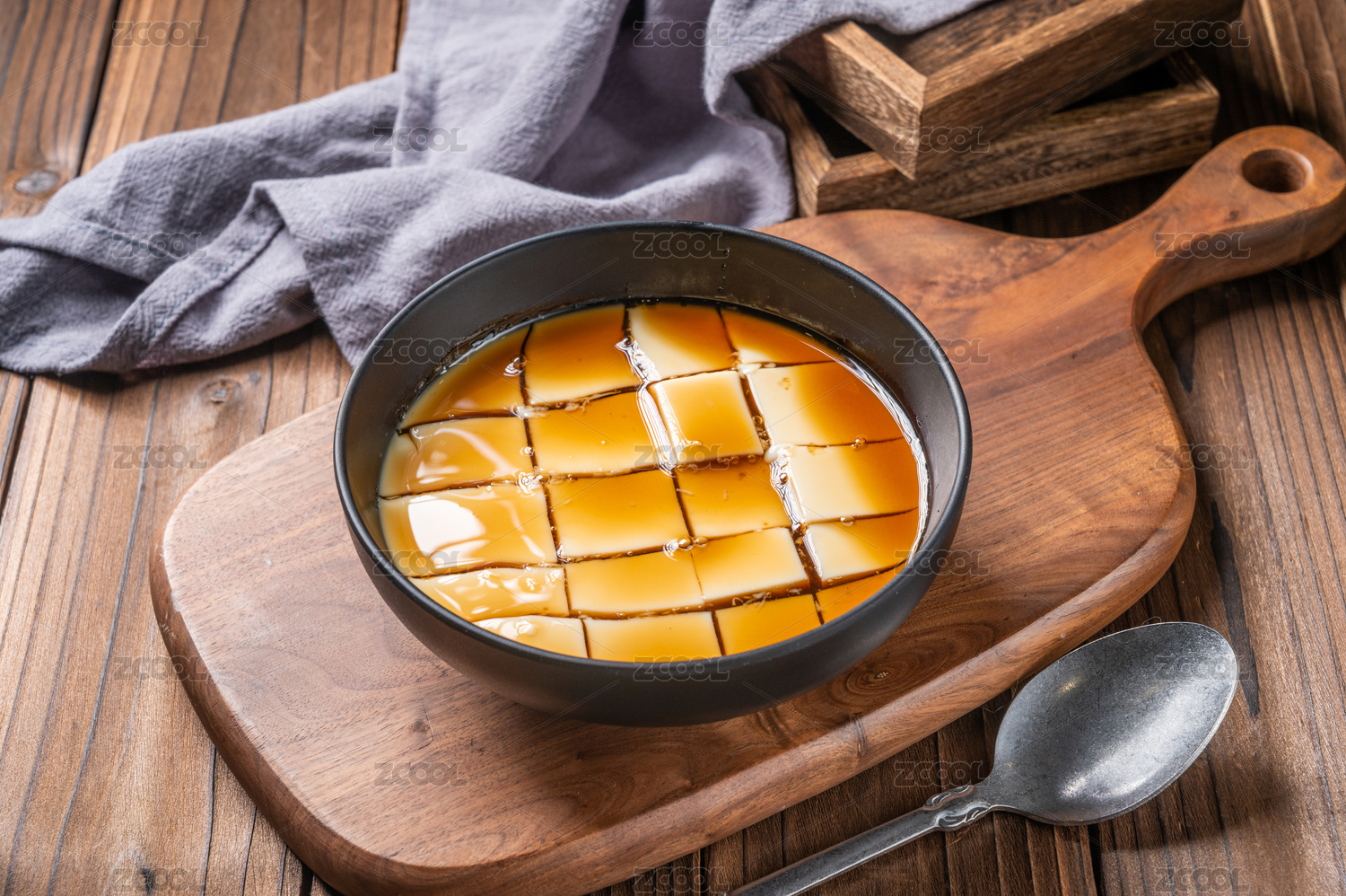 木紋桌上的一碗焦糖豆花
