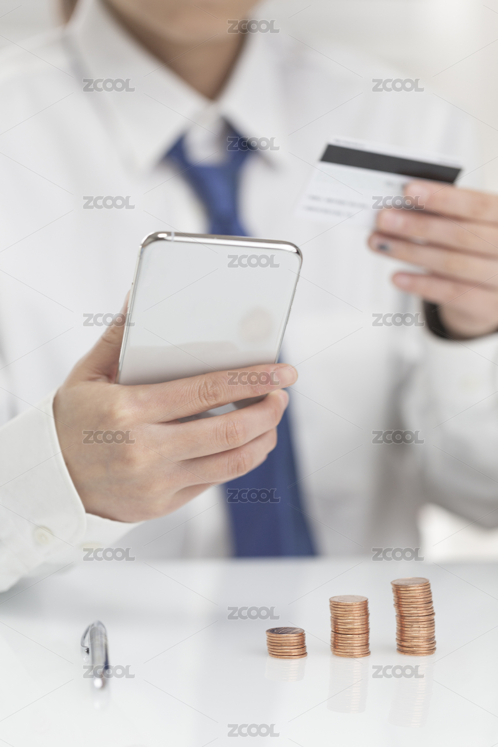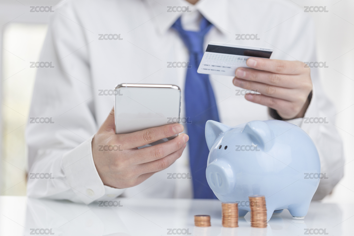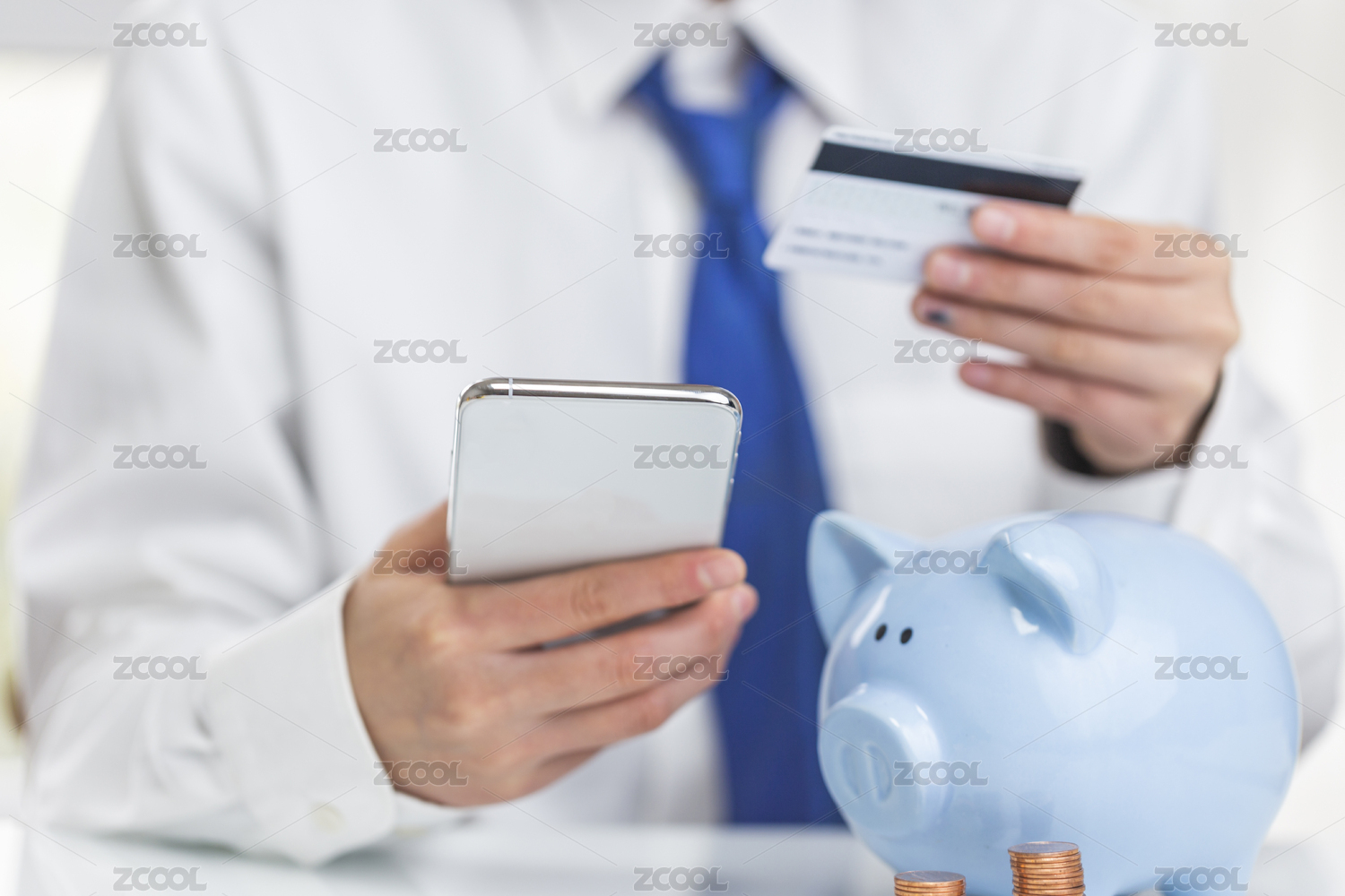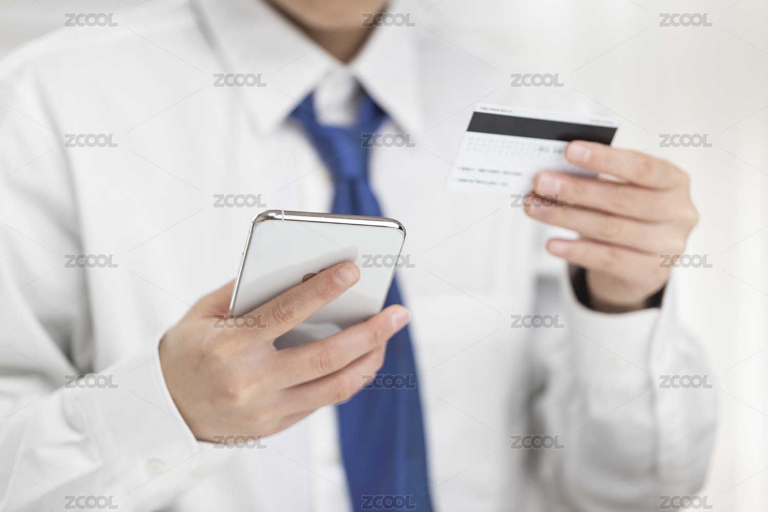 商務(wù)人士拿著手機(jī)和銀行卡在線支付