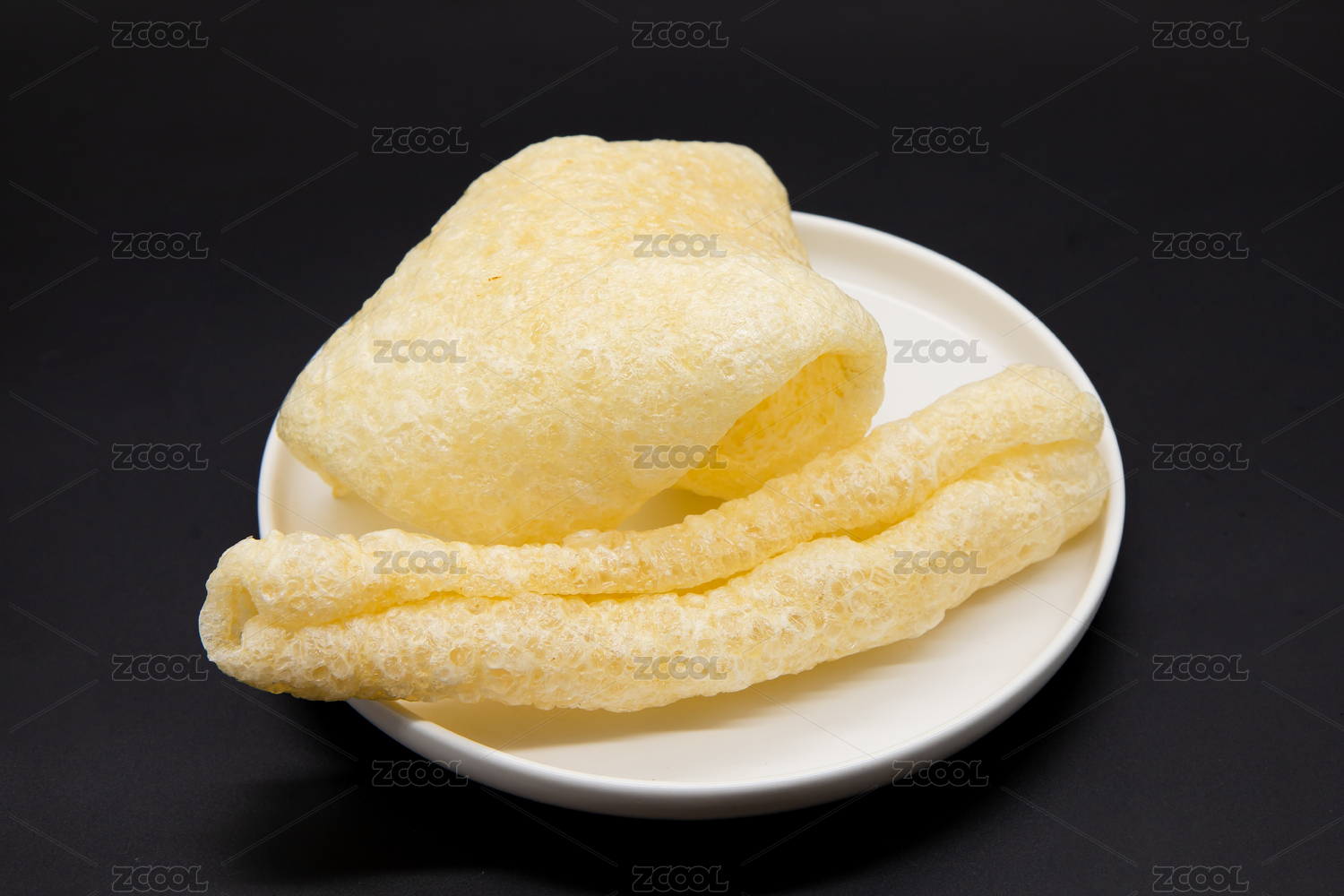 白色背景潮汕特色爆炒豬皮響皮