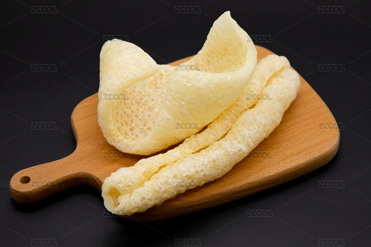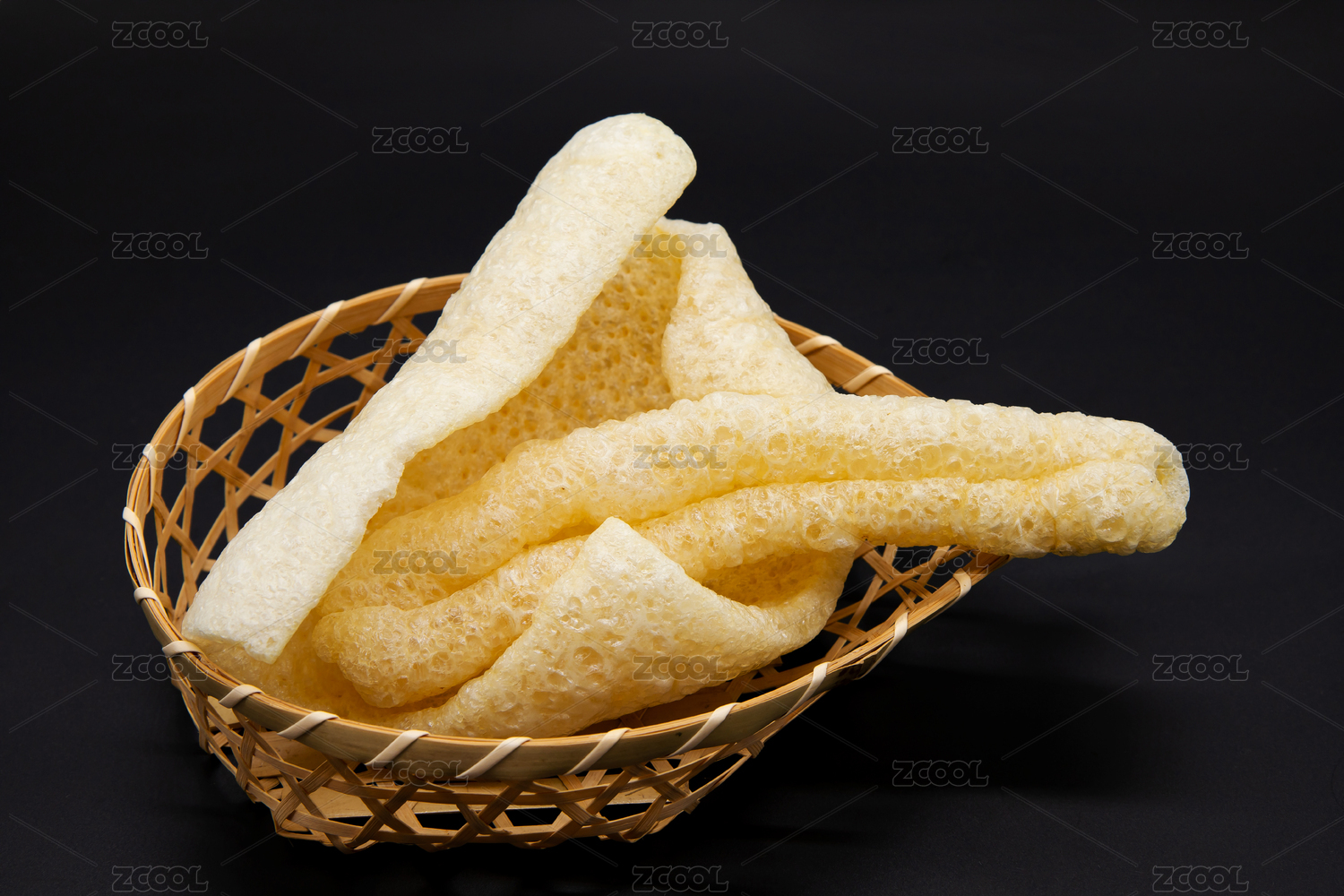 黑色背景潮汕特色爆炒豬皮響皮