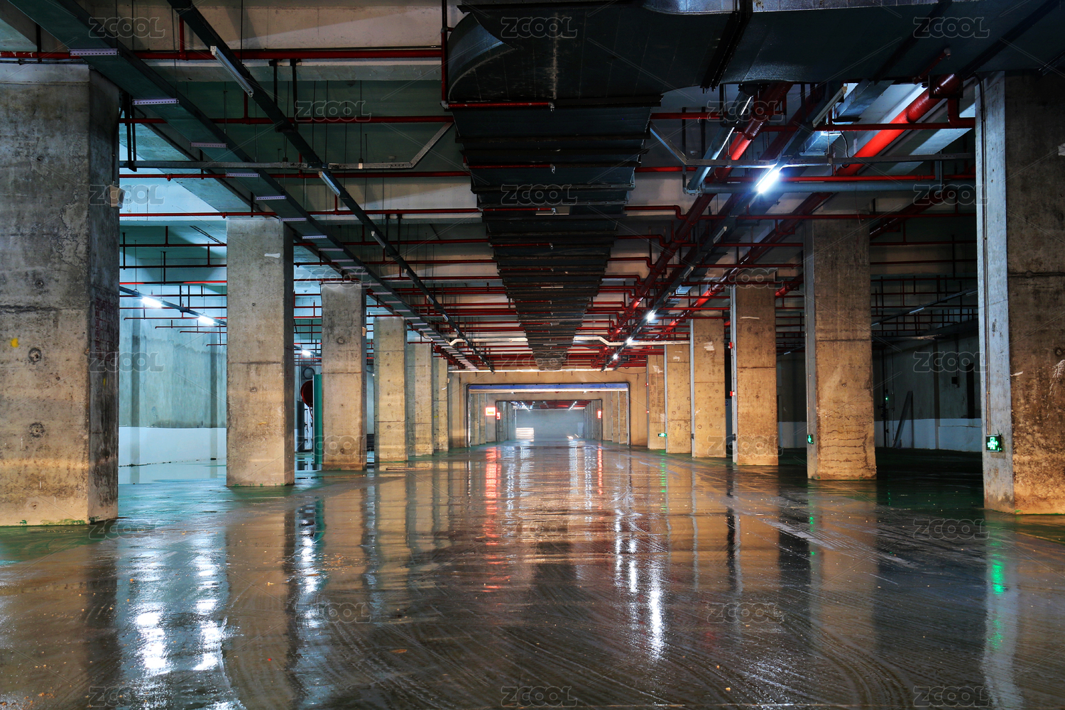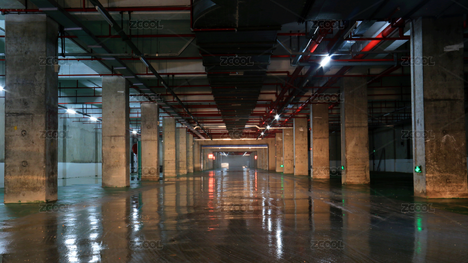 潮濕空曠無(wú)人的低下停車場(chǎng)