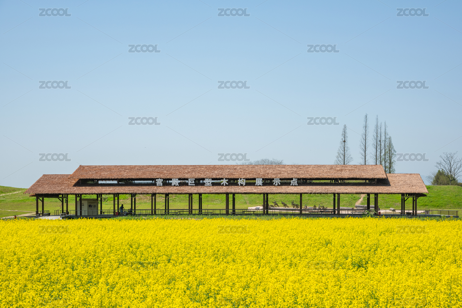 浙江杭州良渚古城遺址公園春天油菜花田風(fēng)光