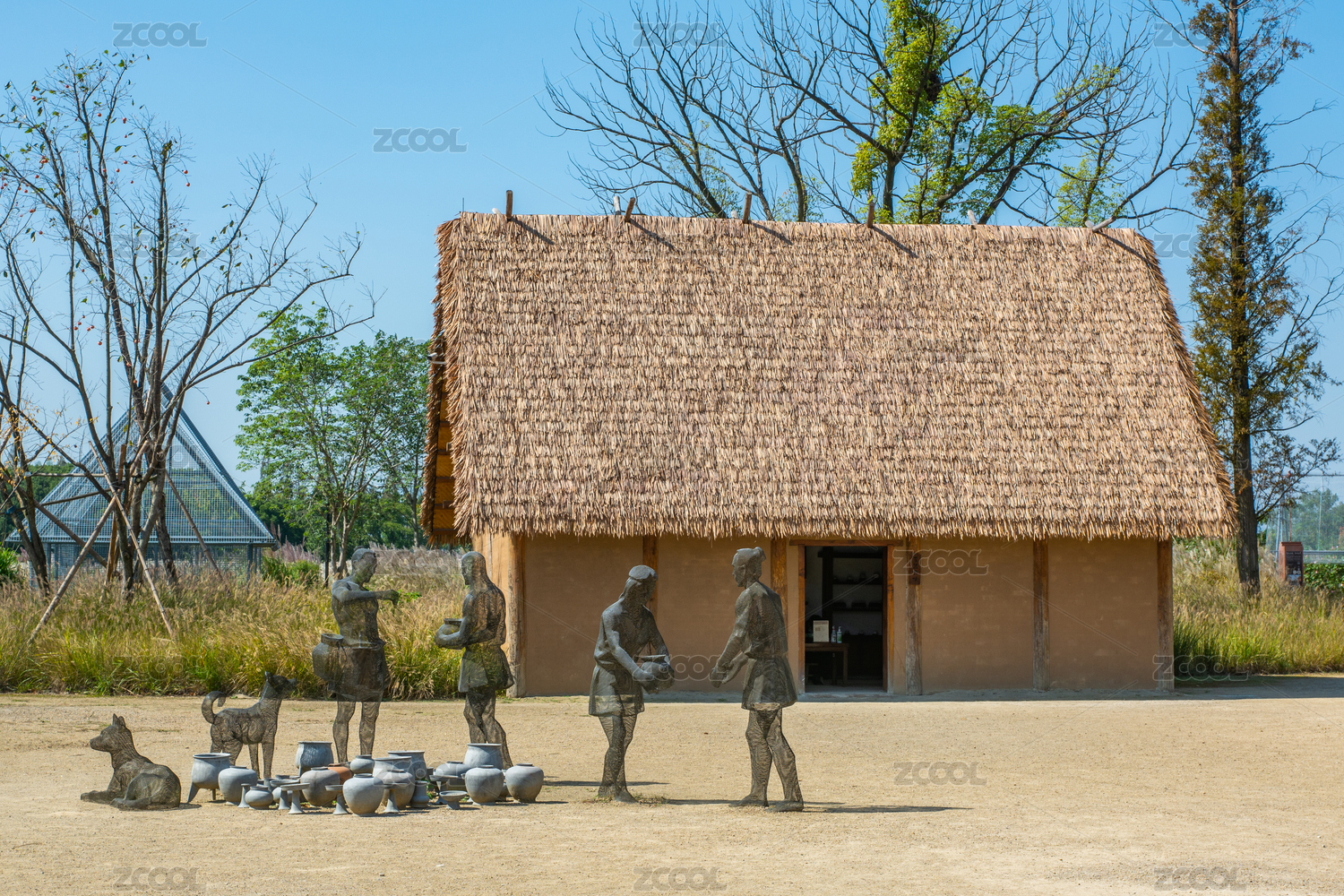 杭州余杭良渚古城遺址公園古人生活場(chǎng)景復(fù)原