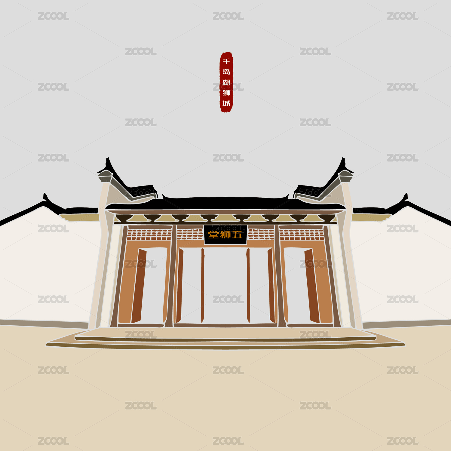 文淵獅城 五獅堂 馬頭墻古宅 標(biāo)志矢量素材