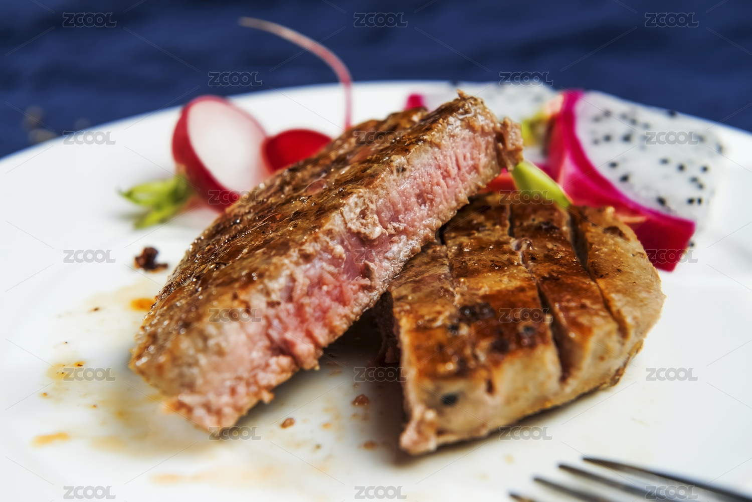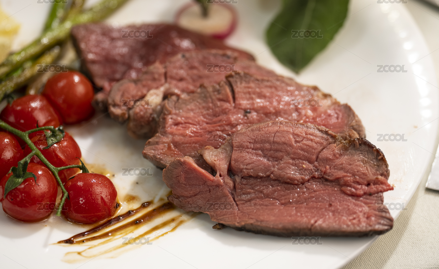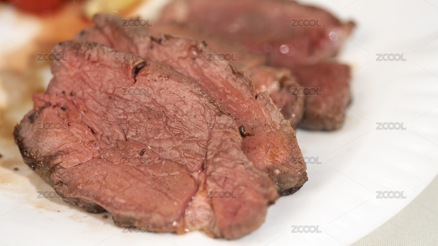 七分熟的牛肉在白色盤子里