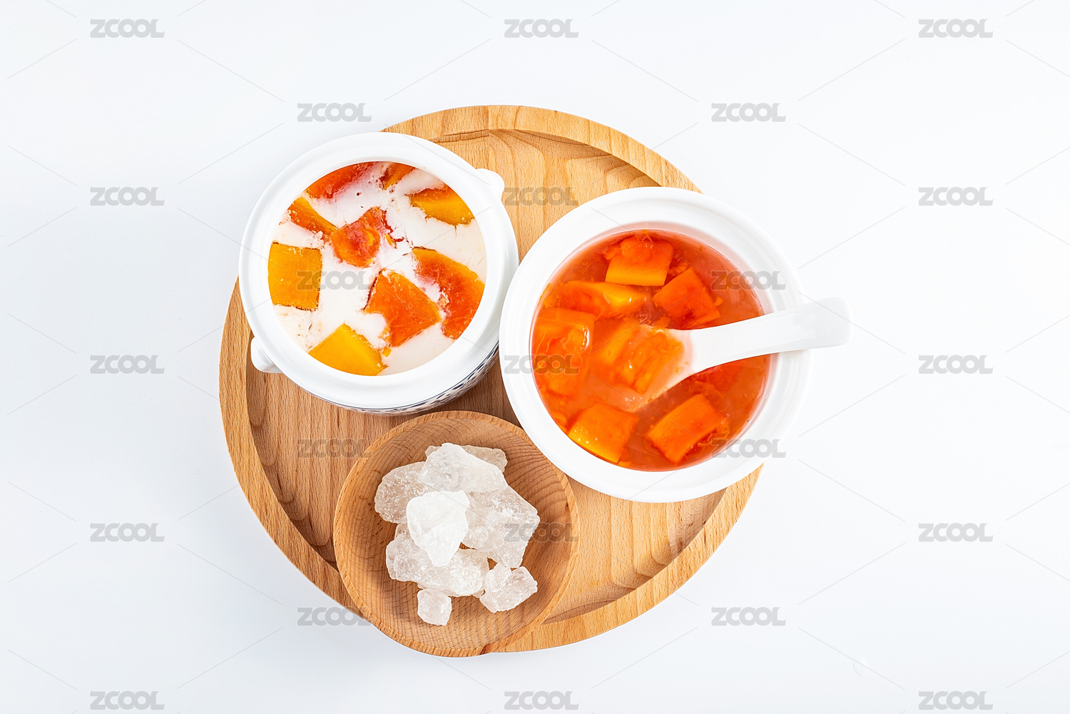 中國傳統(tǒng)養(yǎng)生美食冰糖木瓜燉燕窩和牛奶燉木瓜