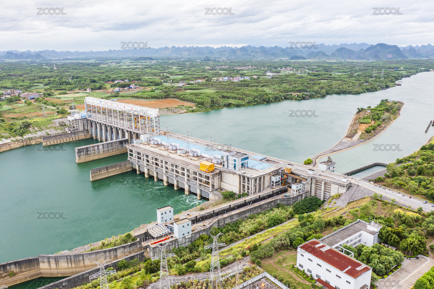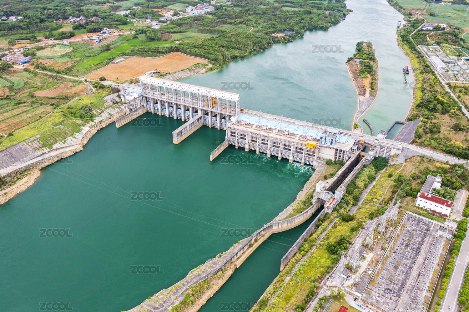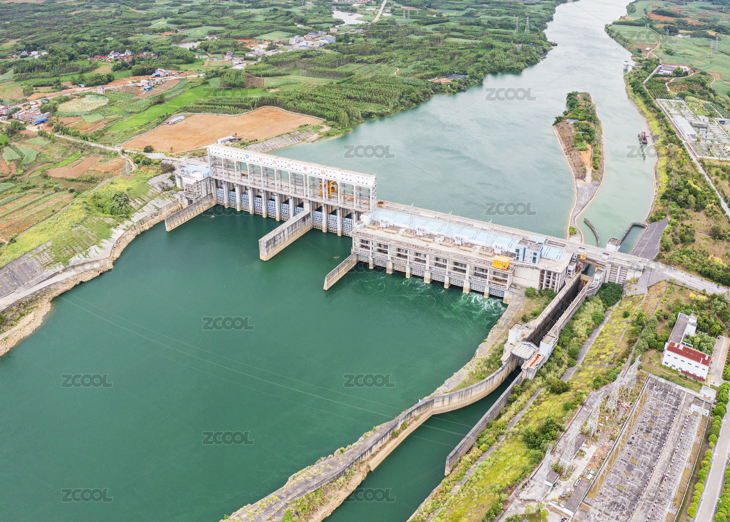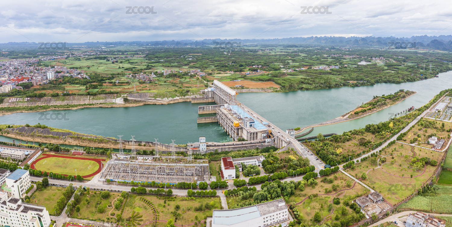 航拍紅水河來(lái)賓橋鞏電站水利樞紐