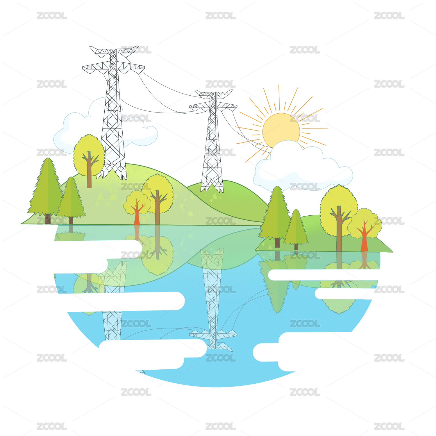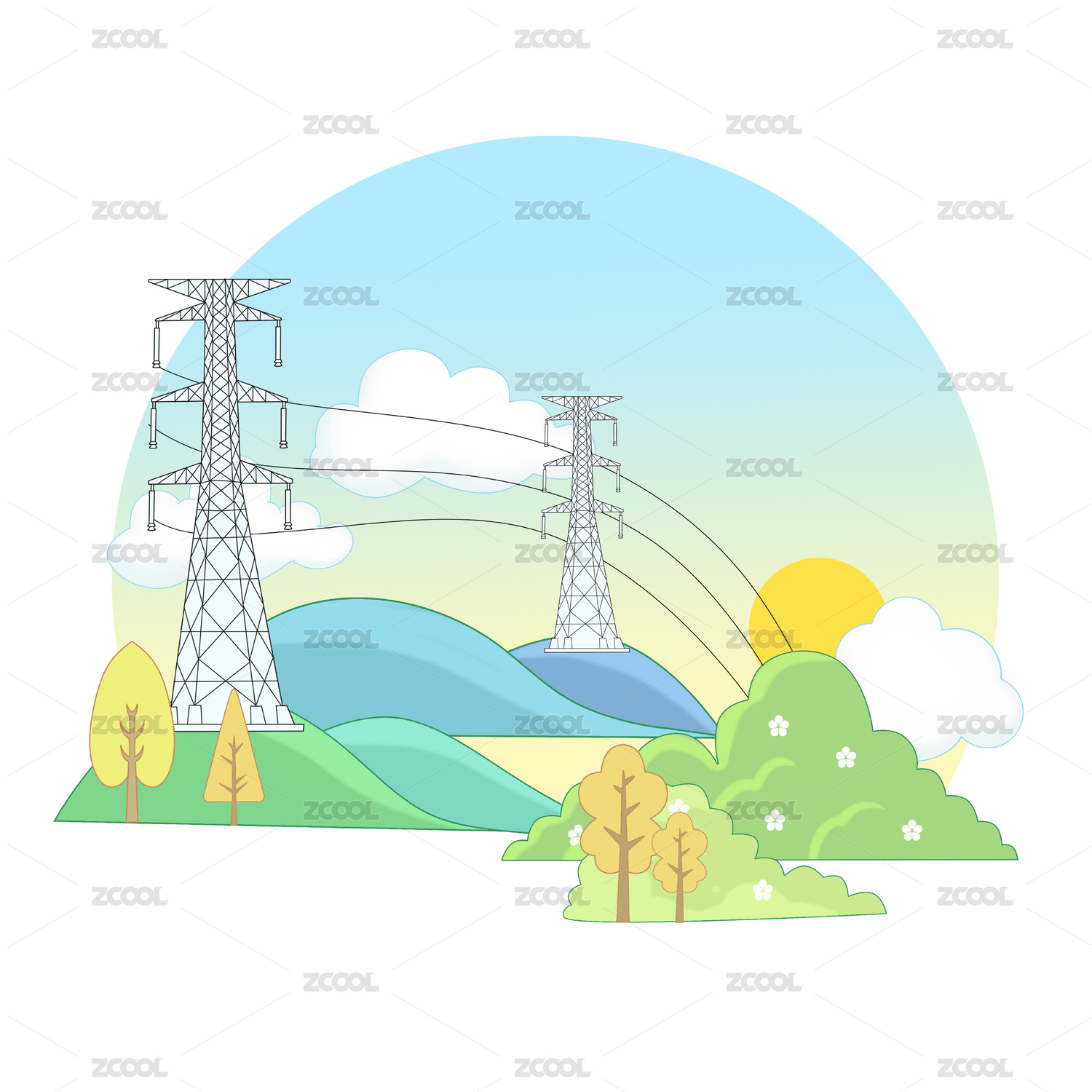 高壓電力塔和美麗的自然風(fēng)光在日落時(shí)分