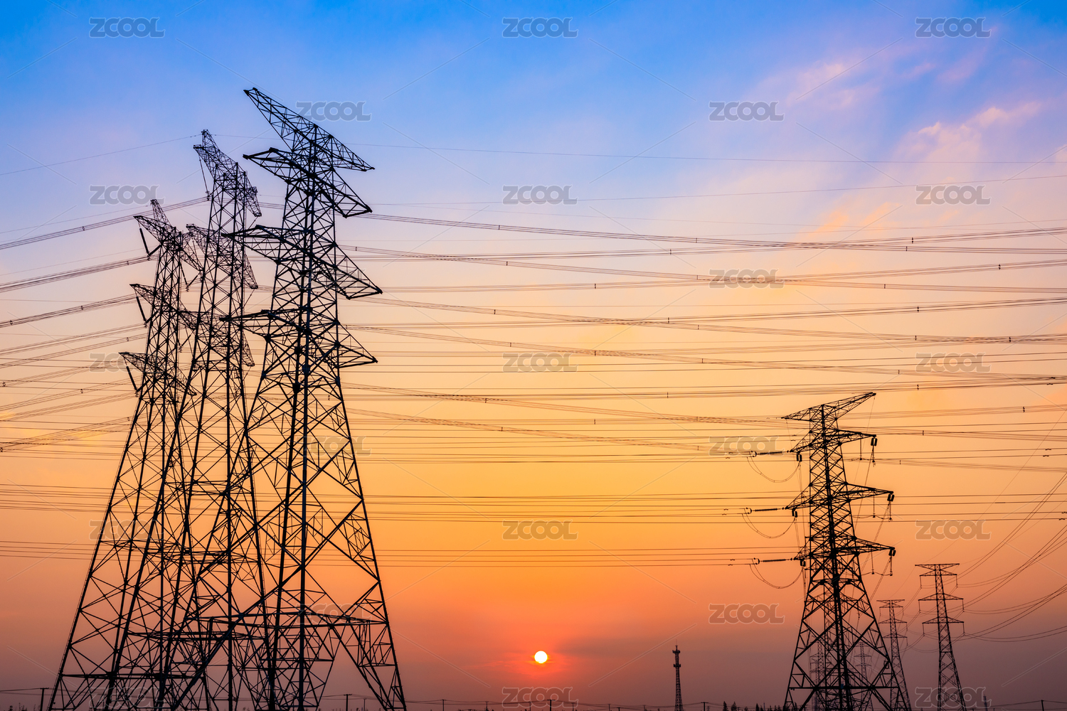 特高壓供電網(wǎng)落日夕陽血色晚霞