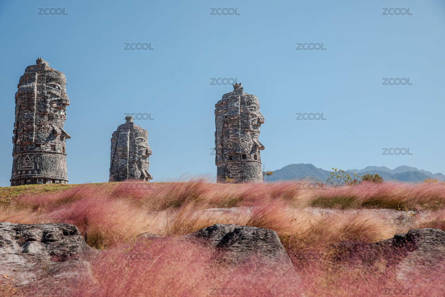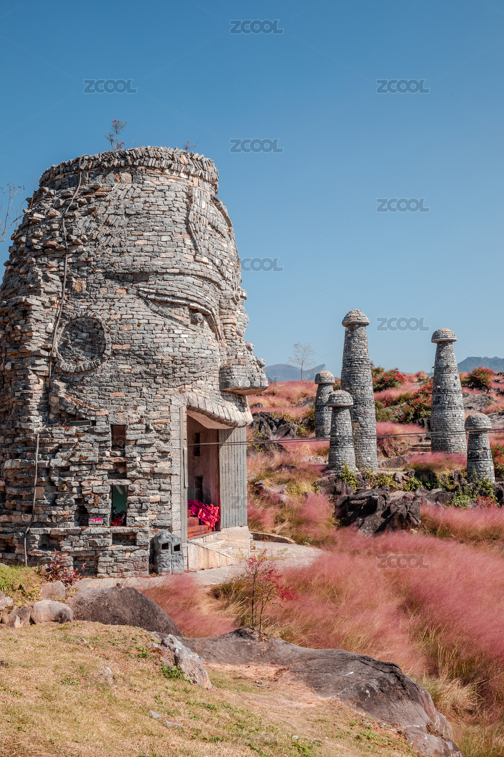 重慶酉陽(yáng)疊石花谷粉黛子花海和石雕