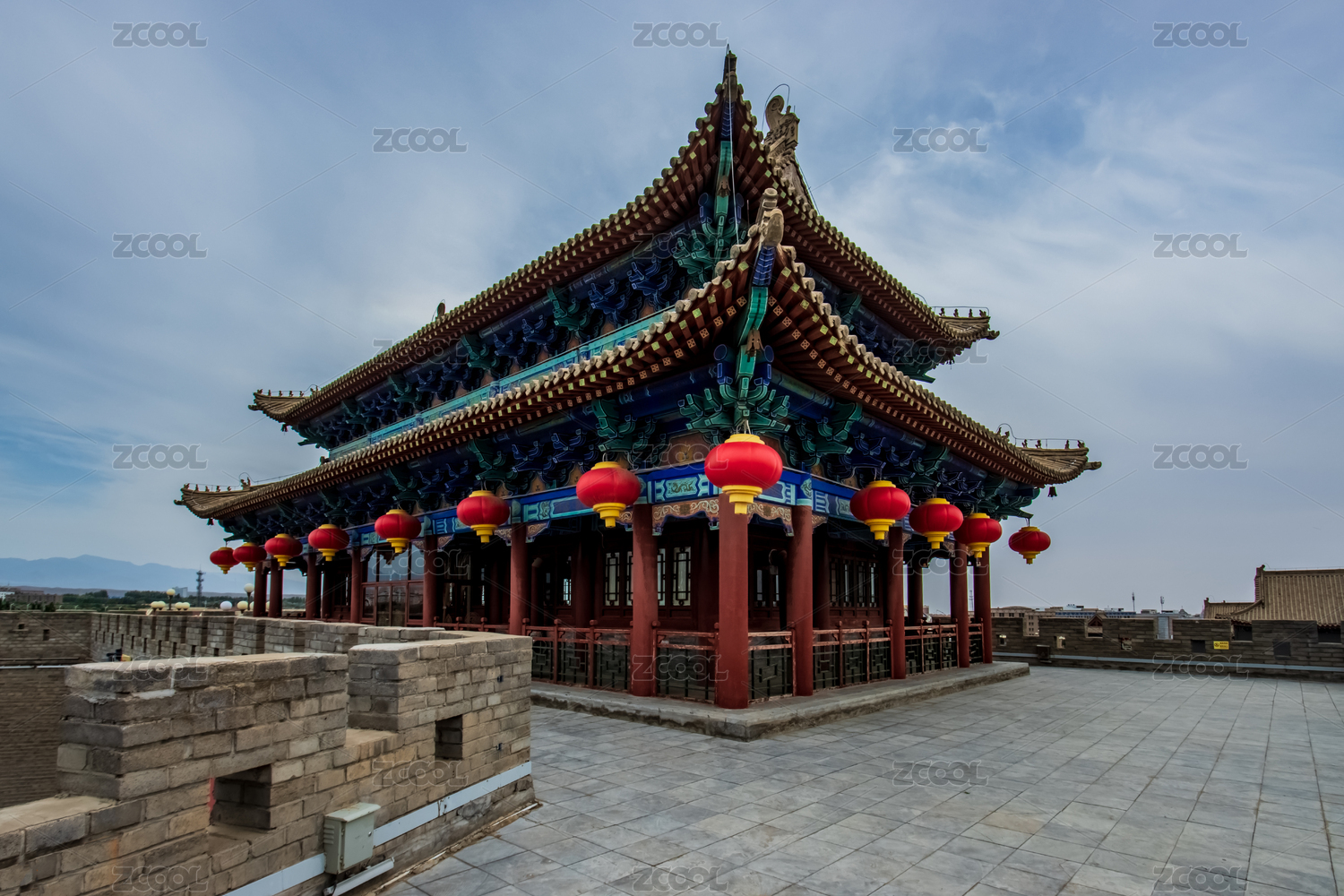 內(nèi)蒙古巴彥浩特鎮(zhèn)定遠(yuǎn)營斗拱屋頂園林建筑