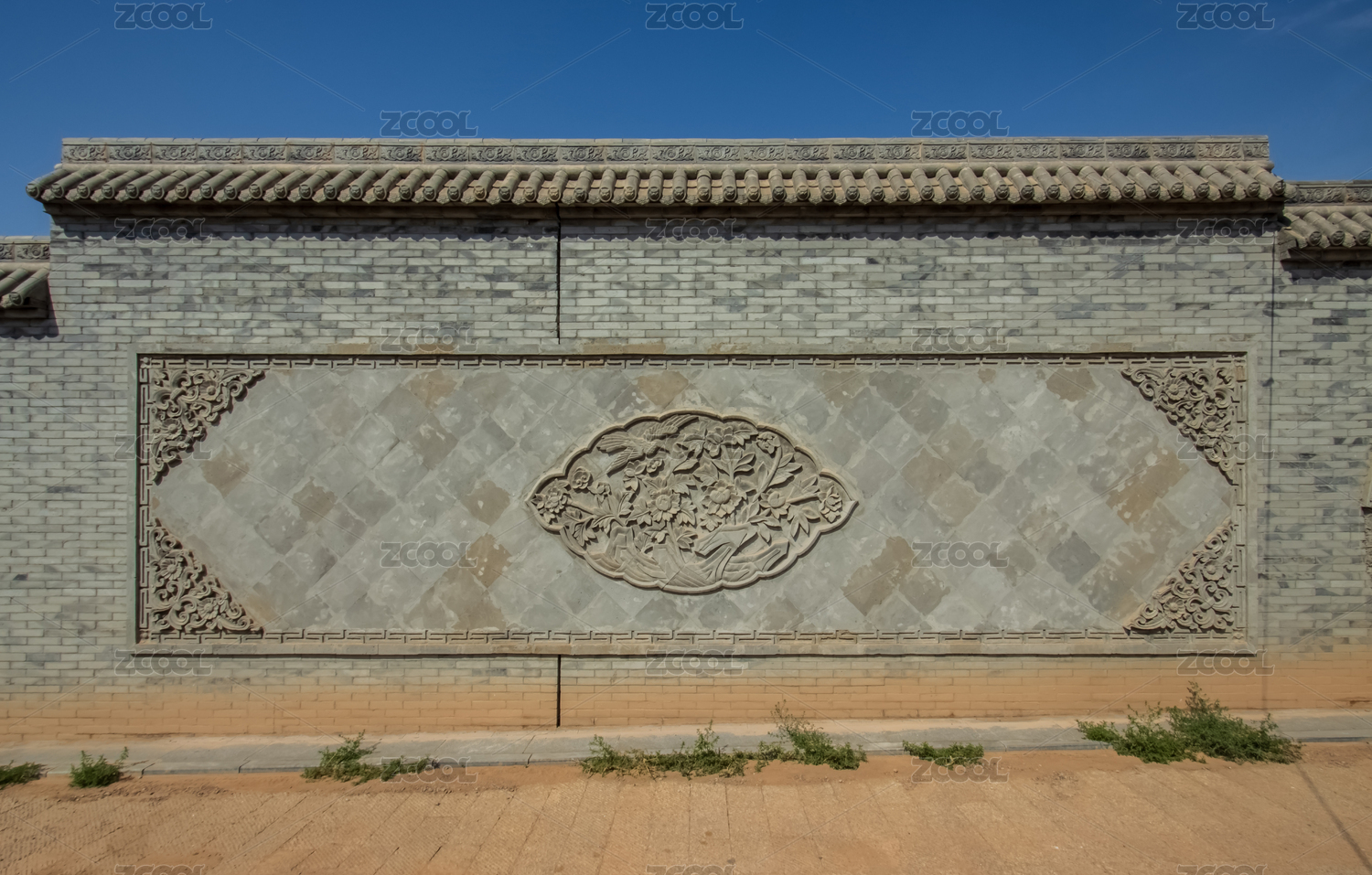 內(nèi)蒙古巴彥浩特鎮(zhèn)定遠(yuǎn)營喜鵲牡丹花浮雕墻