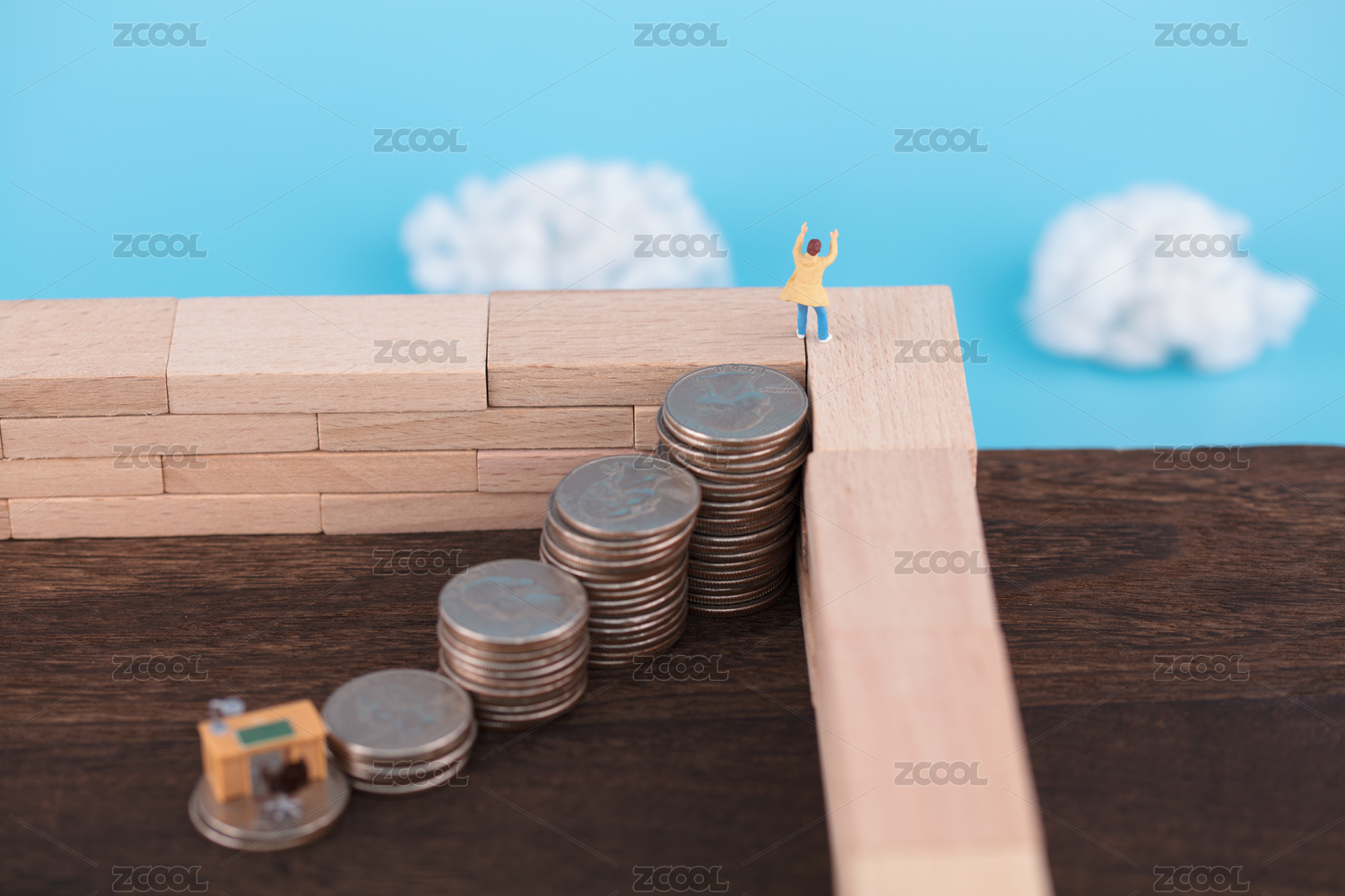 微縮創(chuàng)意幾何形狀階梯上奔跑的上班族