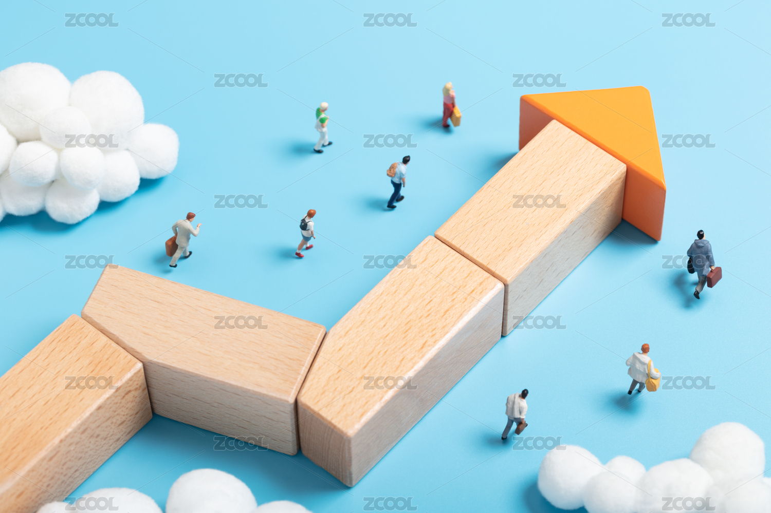 微縮創(chuàng)意箭頭符號(hào)向著目標(biāo)沖刺的人群