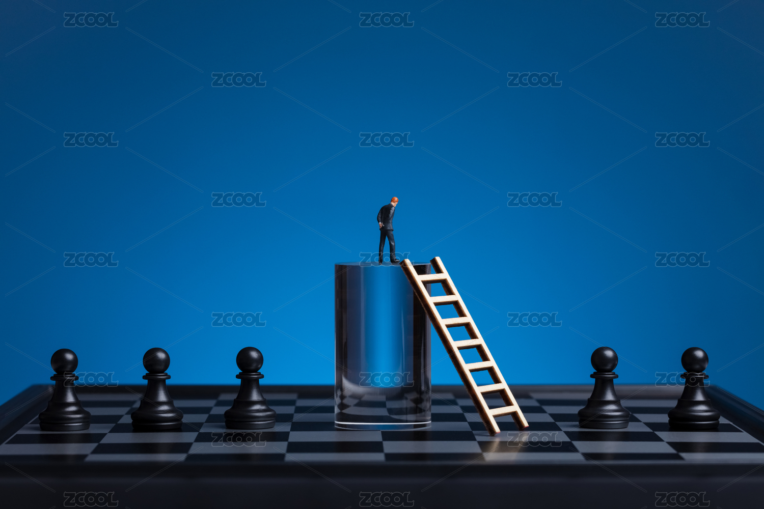 國(guó)際象棋棋盤梯子晉升選拔西裝男性商務(wù)金融