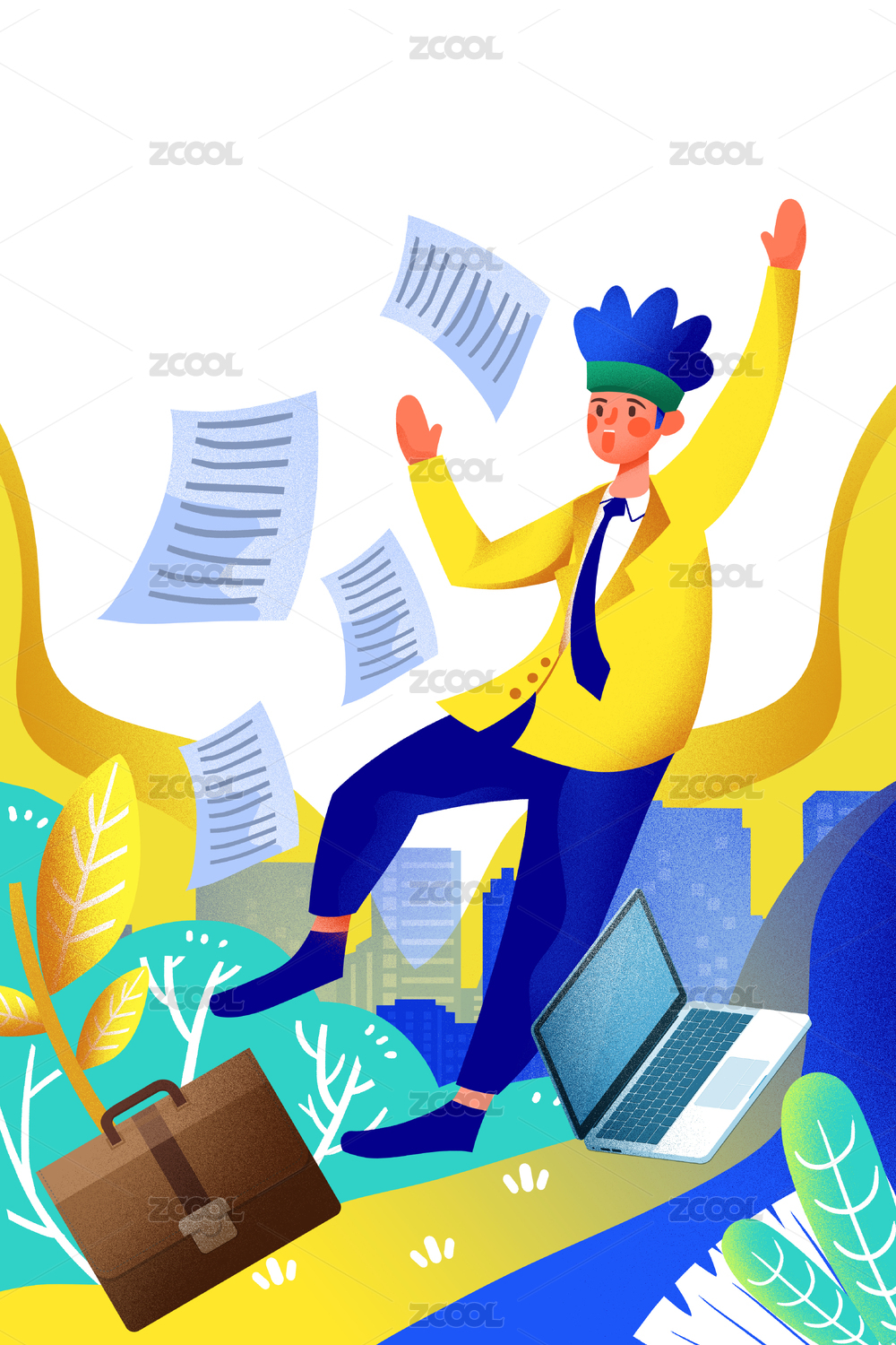卡通手繪職場(chǎng)求職白領(lǐng)晉升閃屏海報(bào)插畫