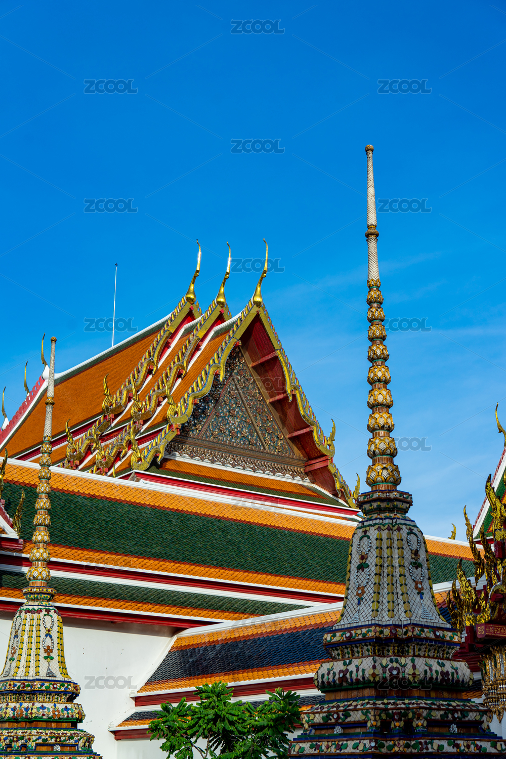 曼谷市旅游 - 在夏季旅游觀光女人在與塔建設的背景臥佛寺的陽光視圖。