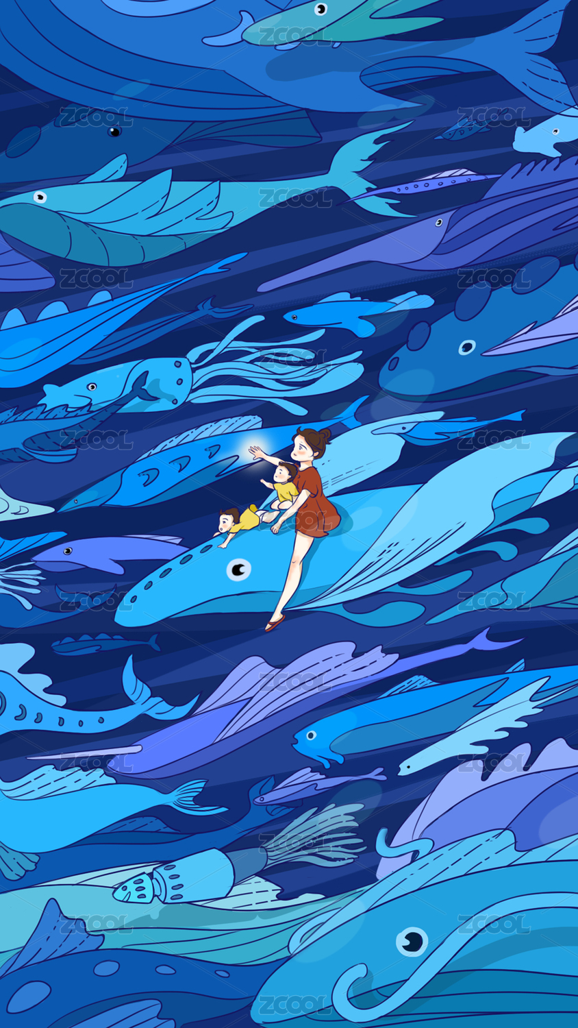 海底漫游魚群親子漫畫