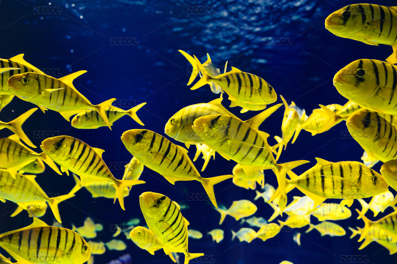 觀賞魚黃金鲹群游魚水族館