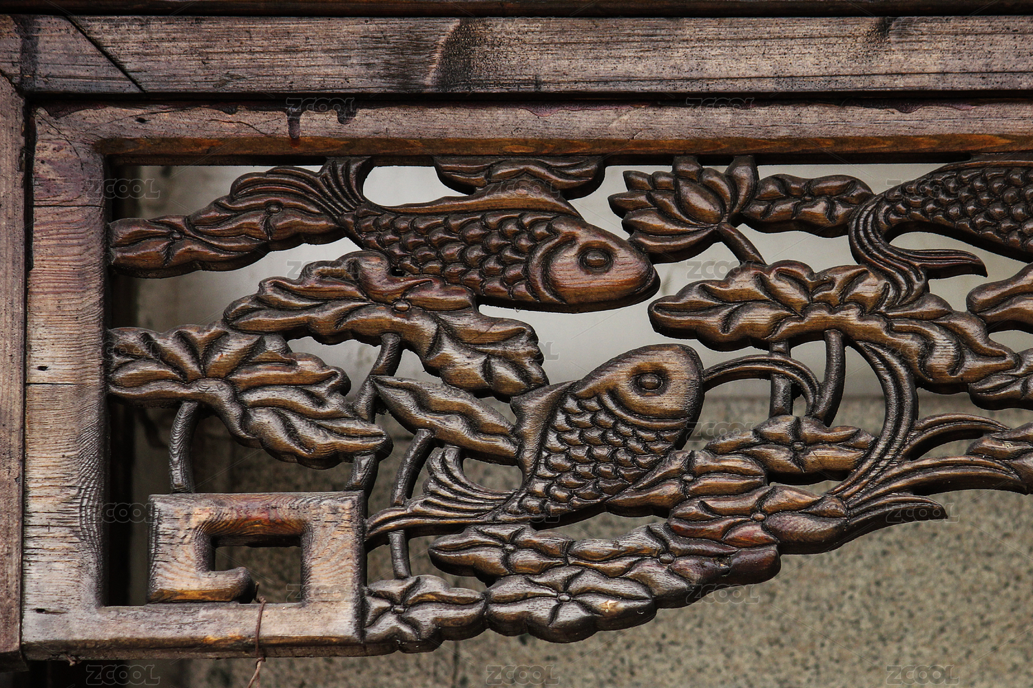 傳統(tǒng)邊框內(nèi)的荷花游魚圖案
