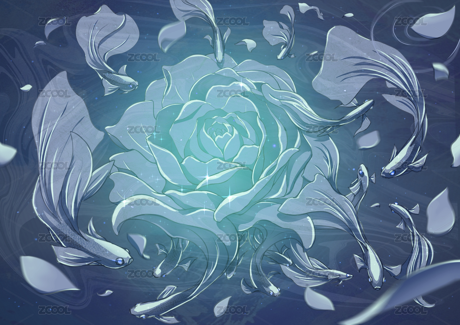 荷花蓮花游魚古風(fēng)分鏡插畫