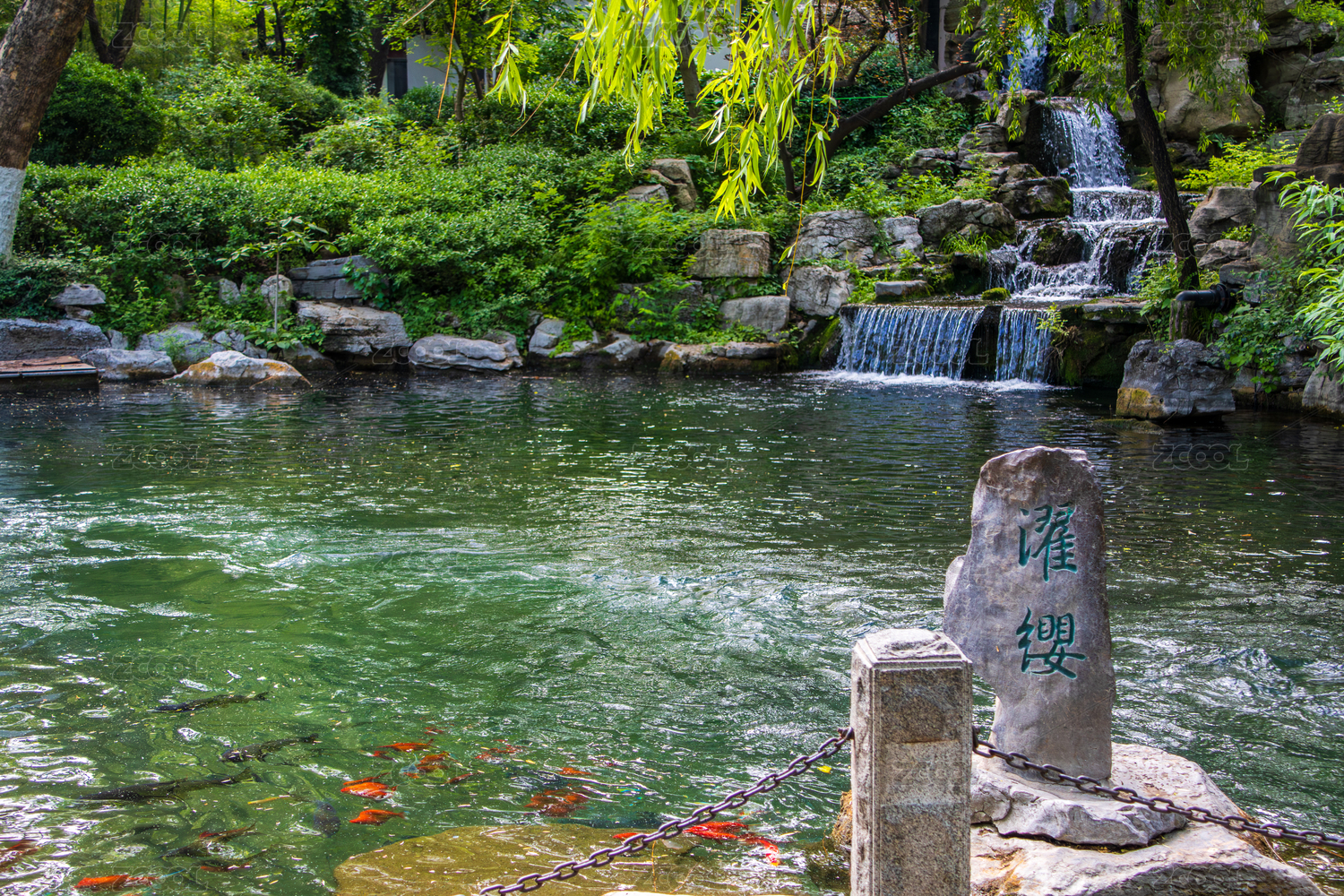 山東濟(jì)南趵突泉園林水景游魚景觀