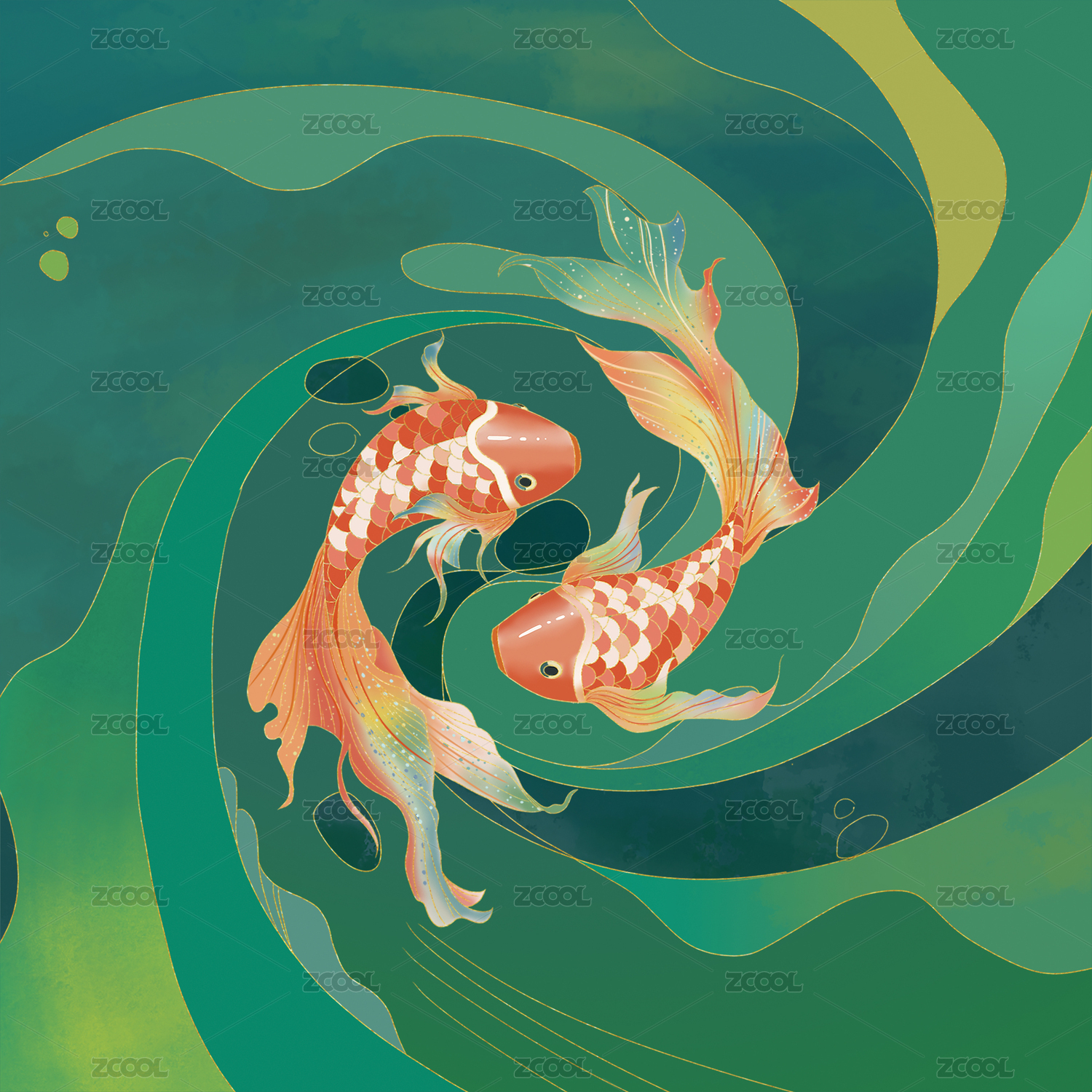 碧波錦鯉游魚