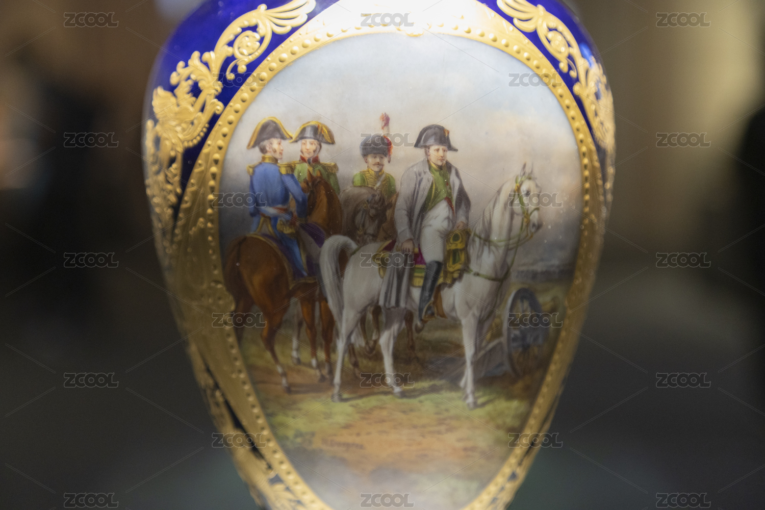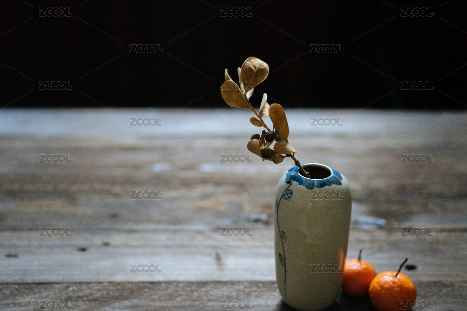 復(fù)古的瓷瓶中插著一支干花,黑色背景