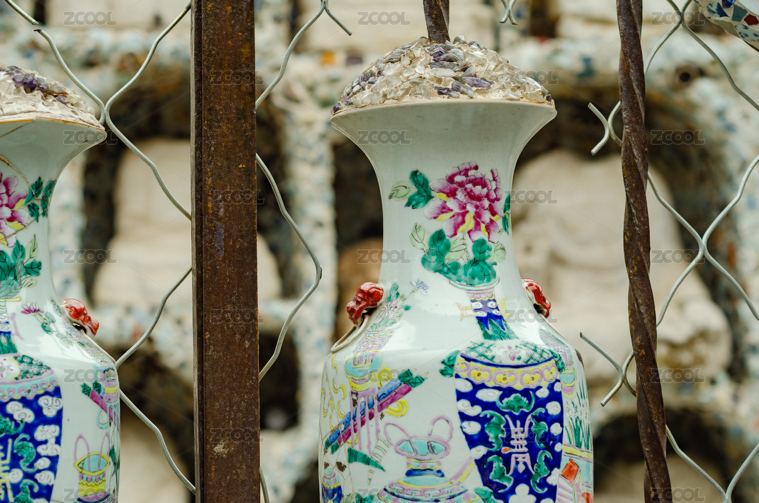 東晉青瓷堆塑園林樓闕瓷瓶工藝品