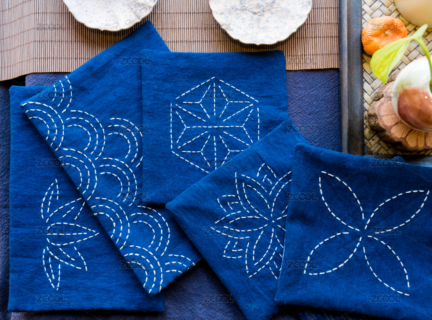 中國傳統(tǒng)手工織布粗布 竹簾上的盤子和桔子瓷瓶