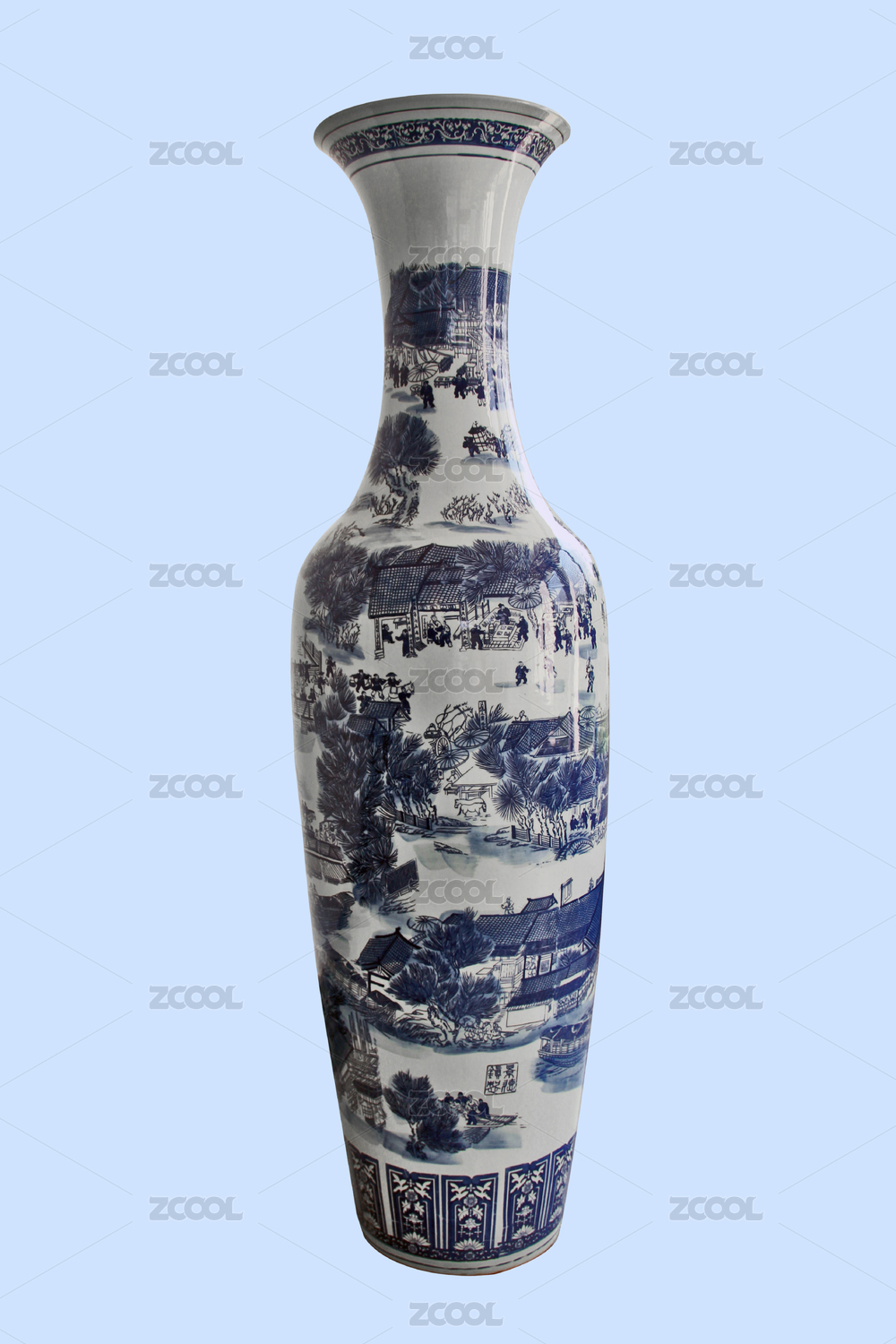 青花瓷瓶里插上了荷花荷葉錦鯉游蕩國風(fēng)插畫