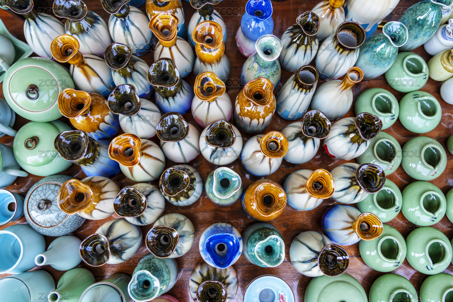 裝有中國白酒的陶瓷瓶放在黑色背景上