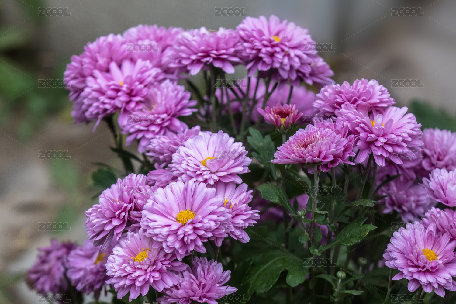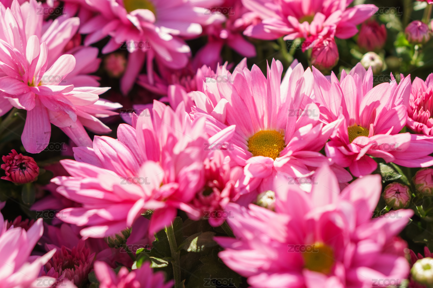 花叢中幾多玫紅色的菊花花朵特寫(xiě)