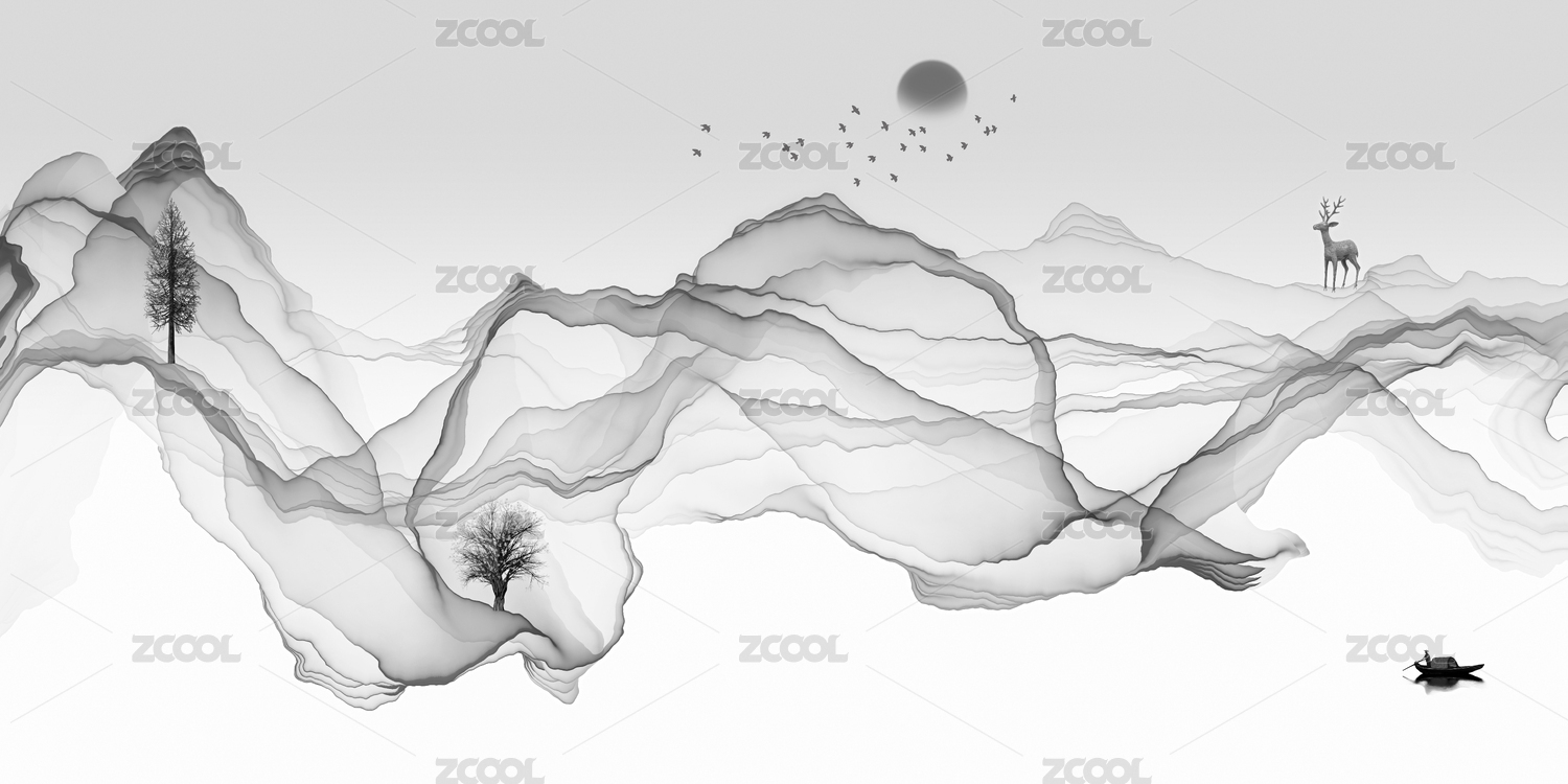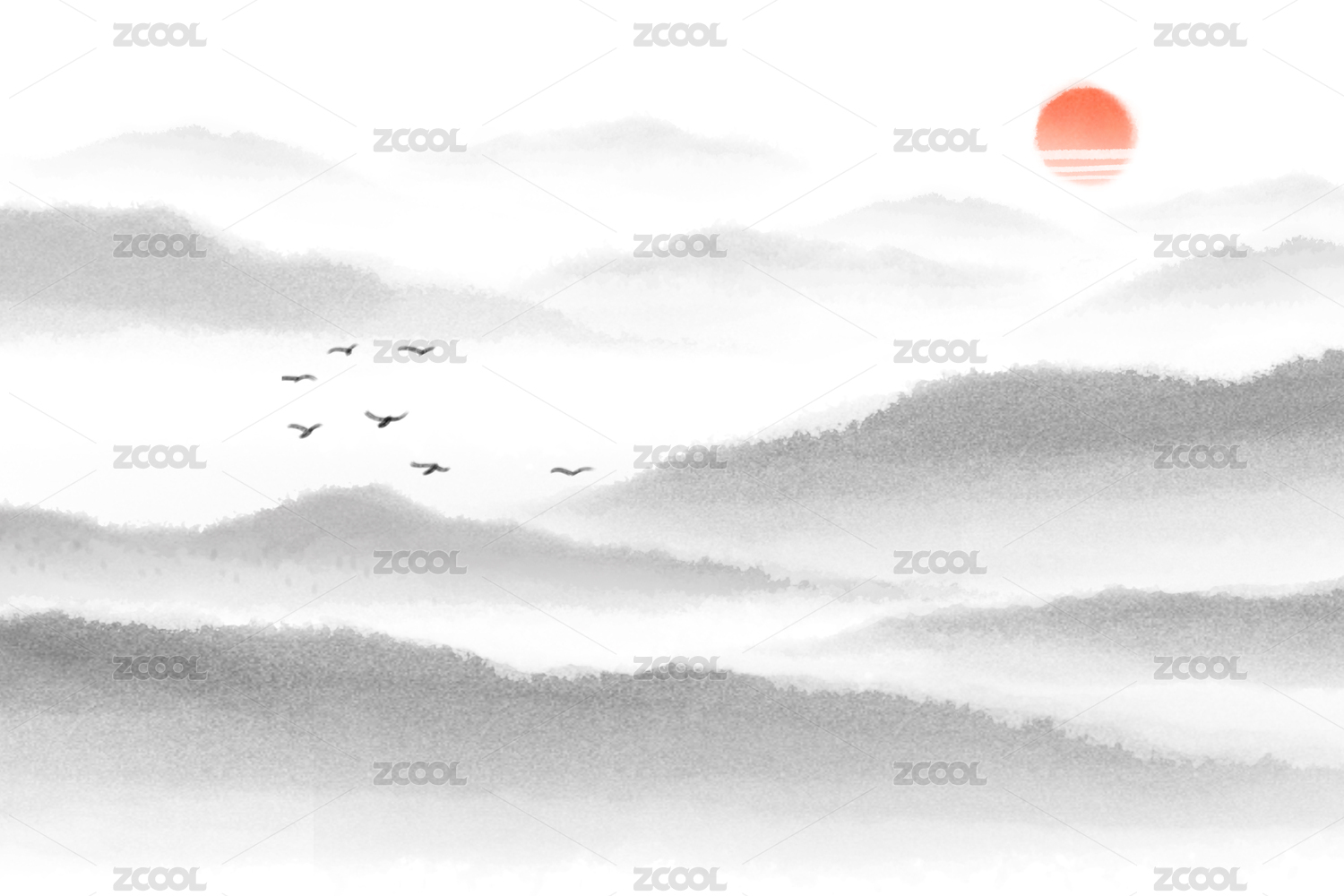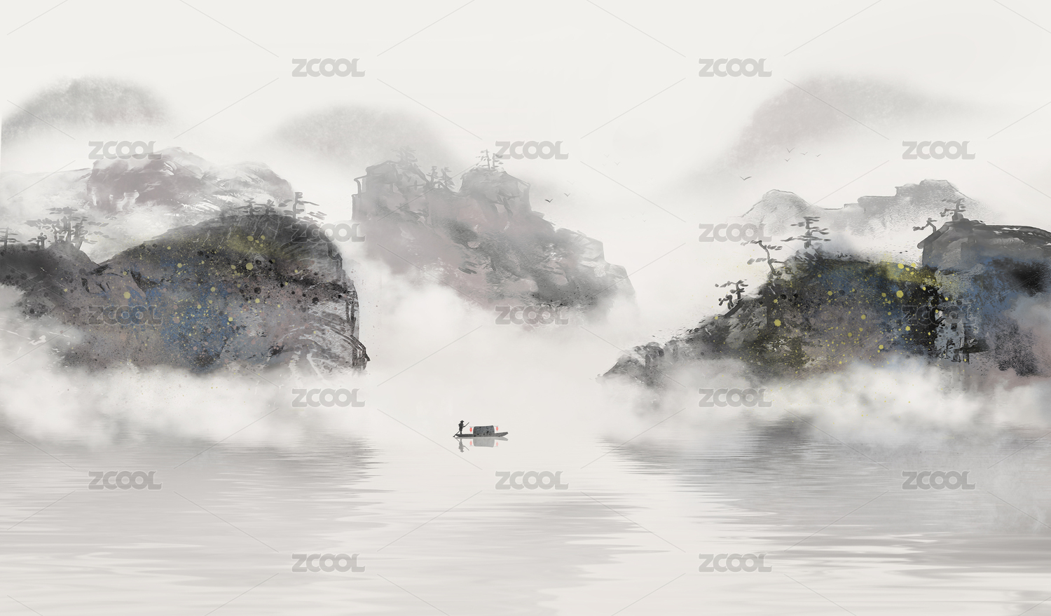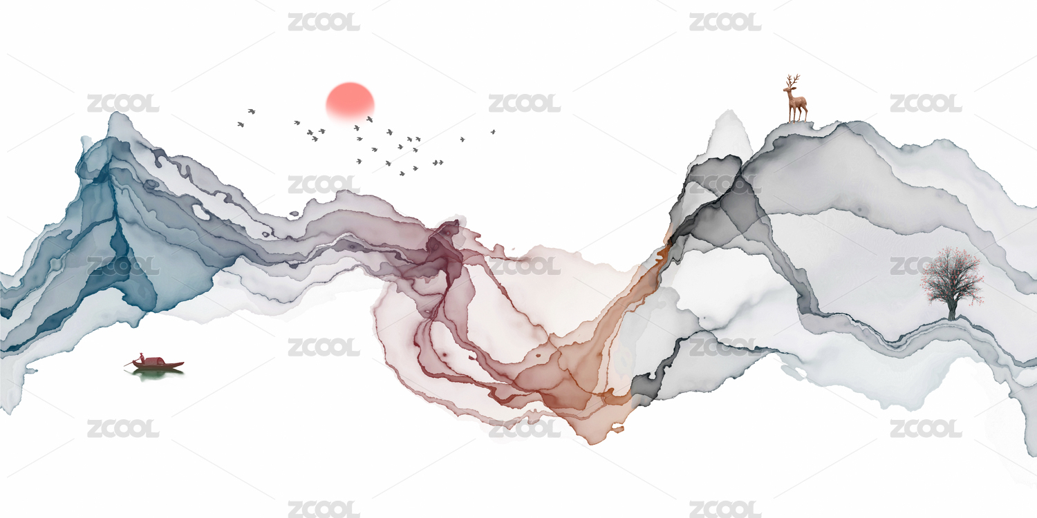 手繪中國(guó)風(fēng)水墨意境山水風(fēng)景