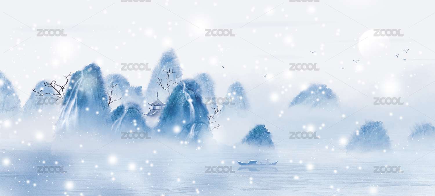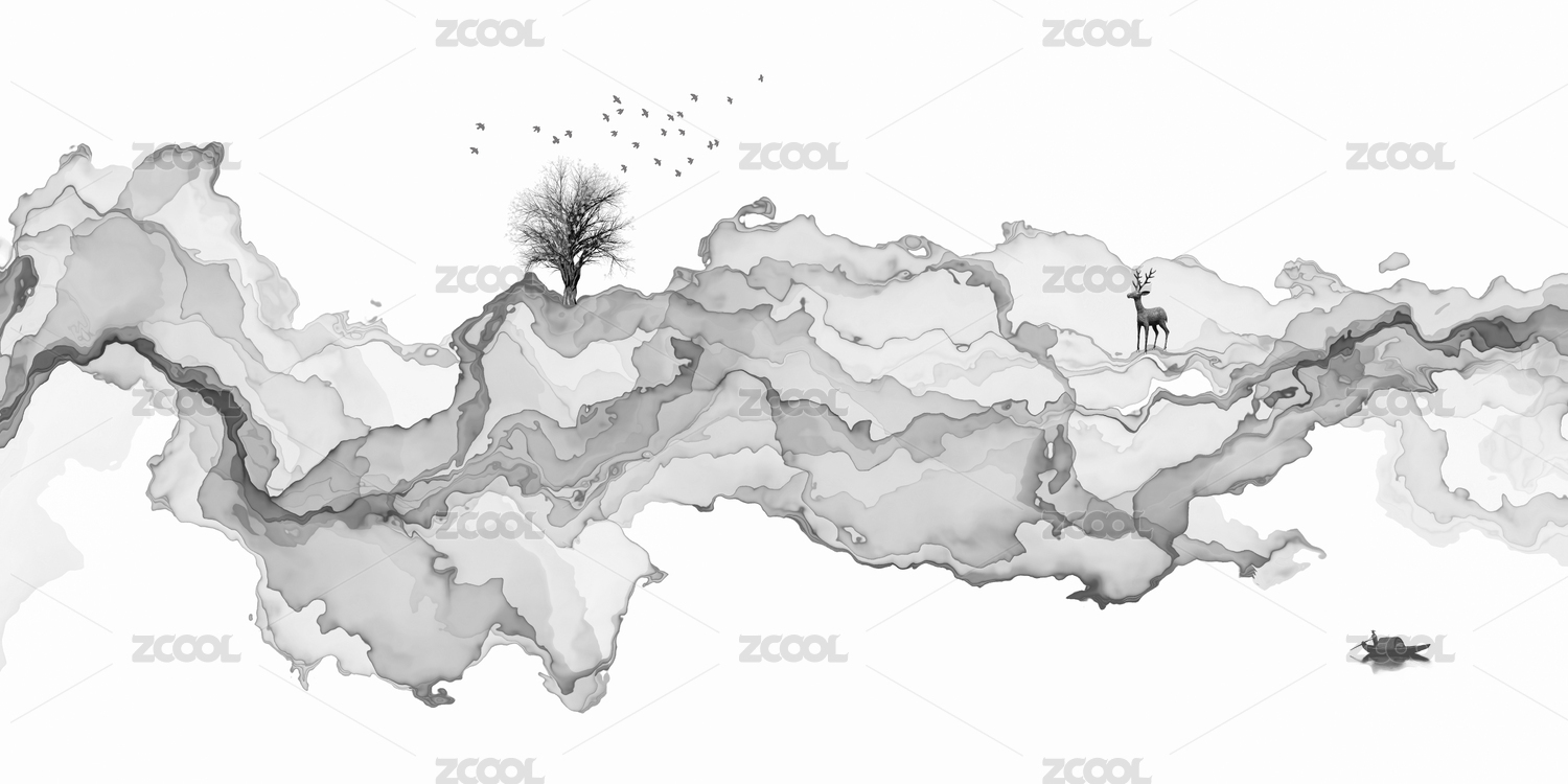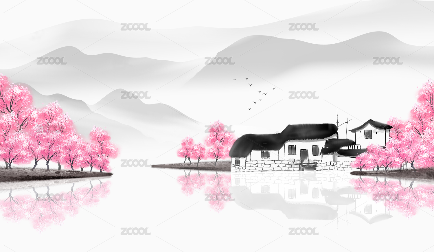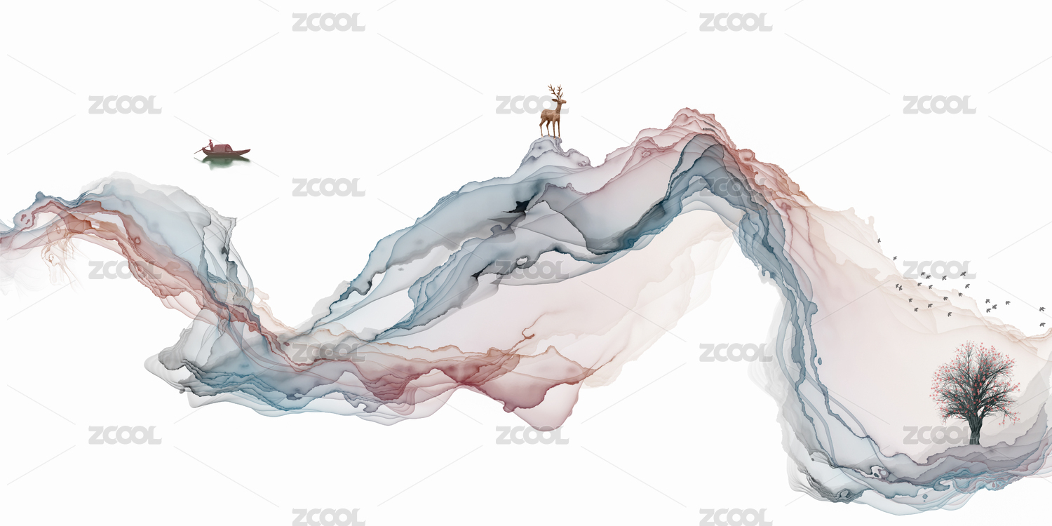 手繪中國(guó)風(fēng)水墨意境山水風(fēng)景