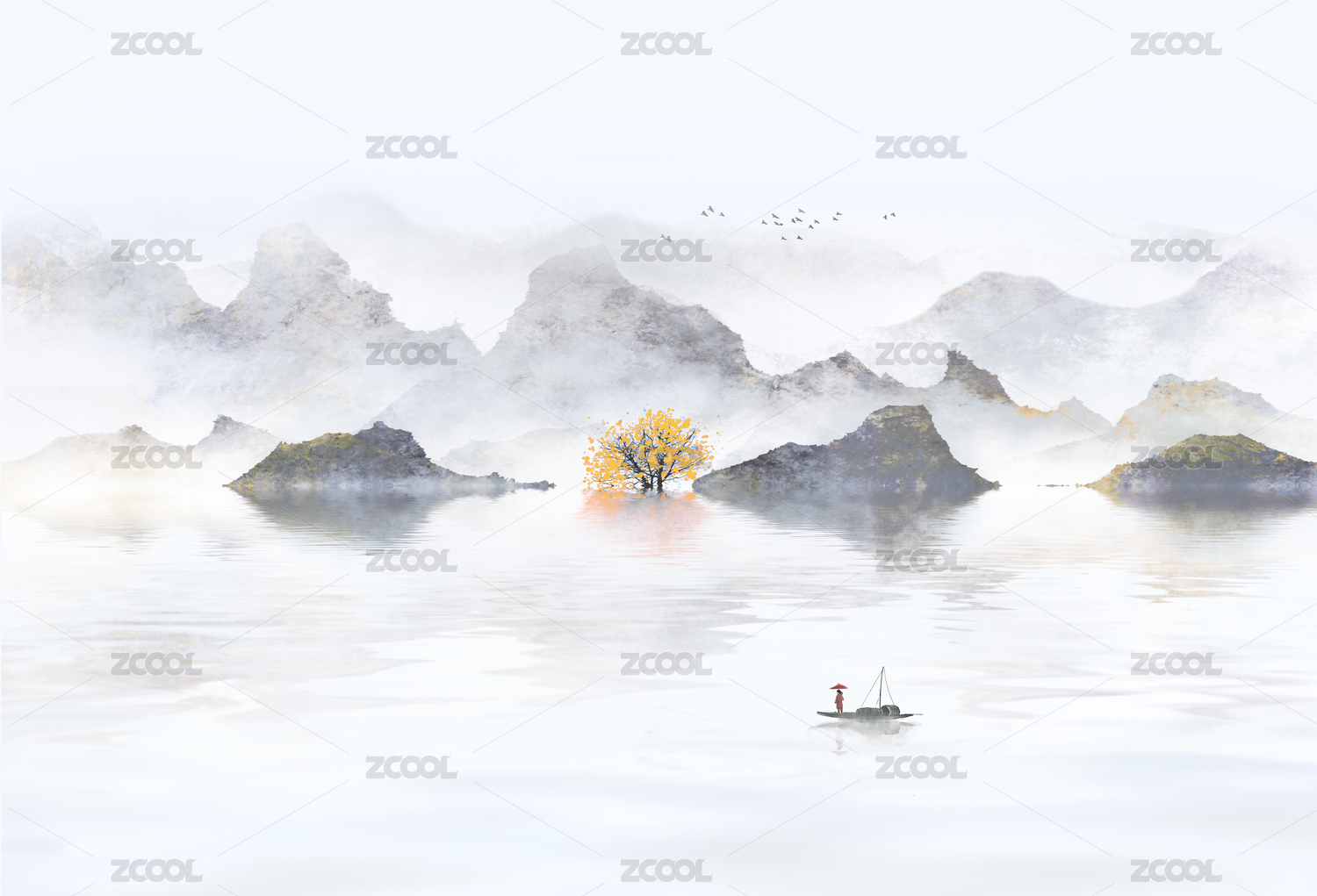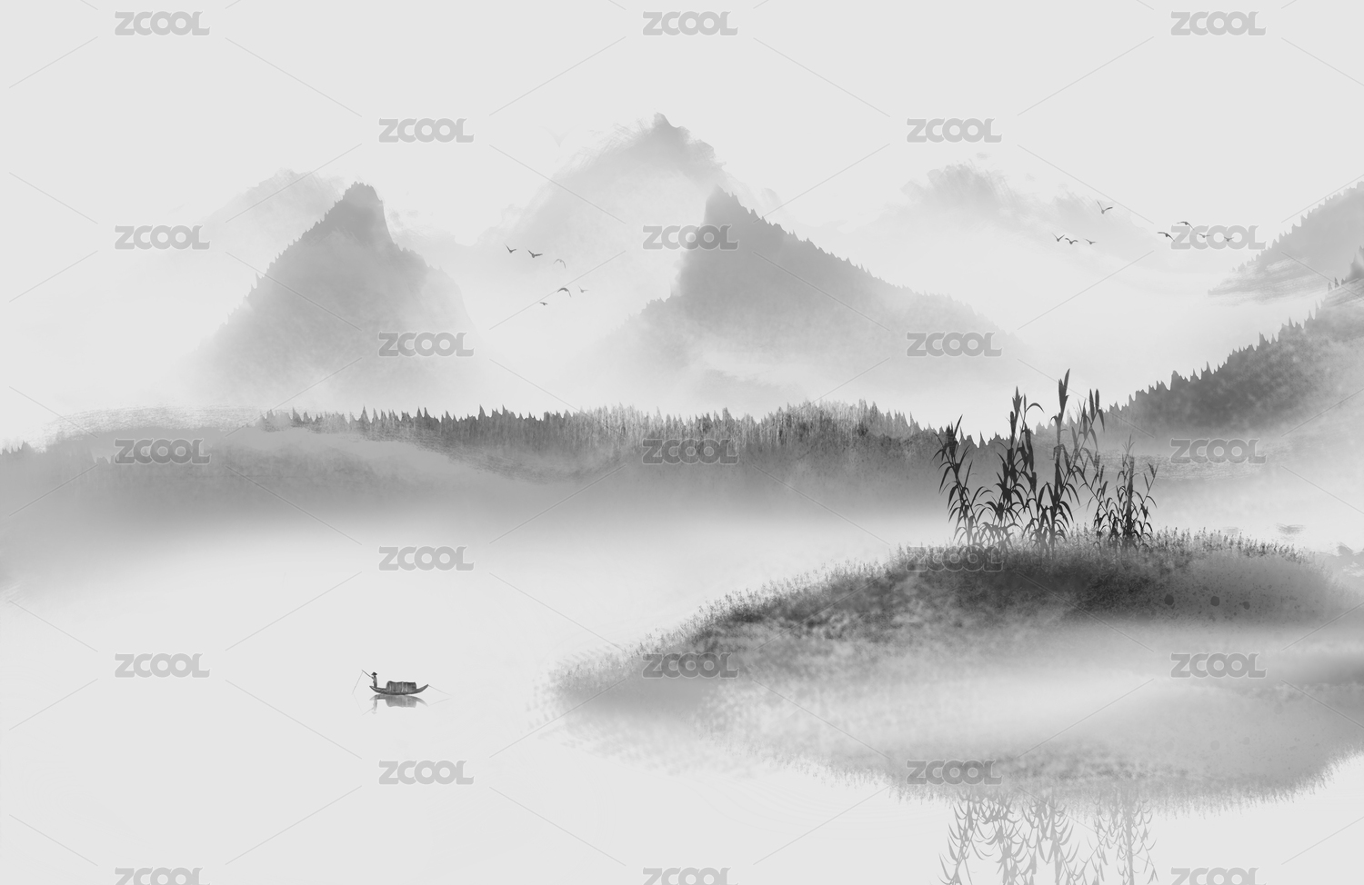 淡雅中國(guó)風(fēng)水墨意境山水畫(huà)