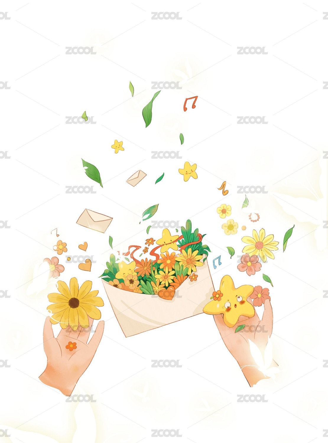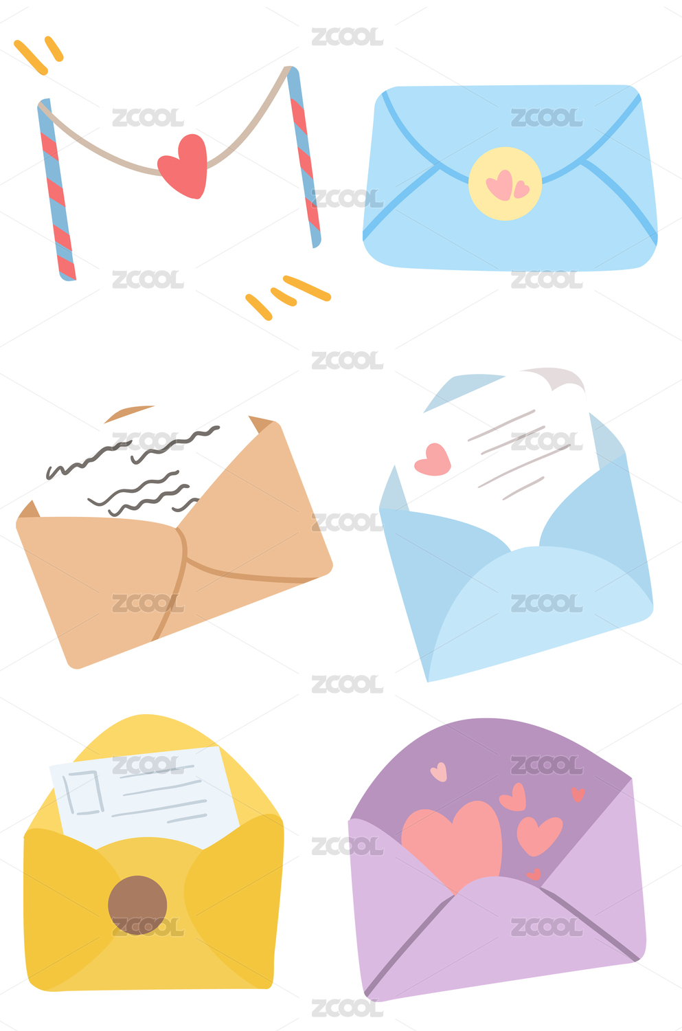 簡筆畫卡通信封元素組合