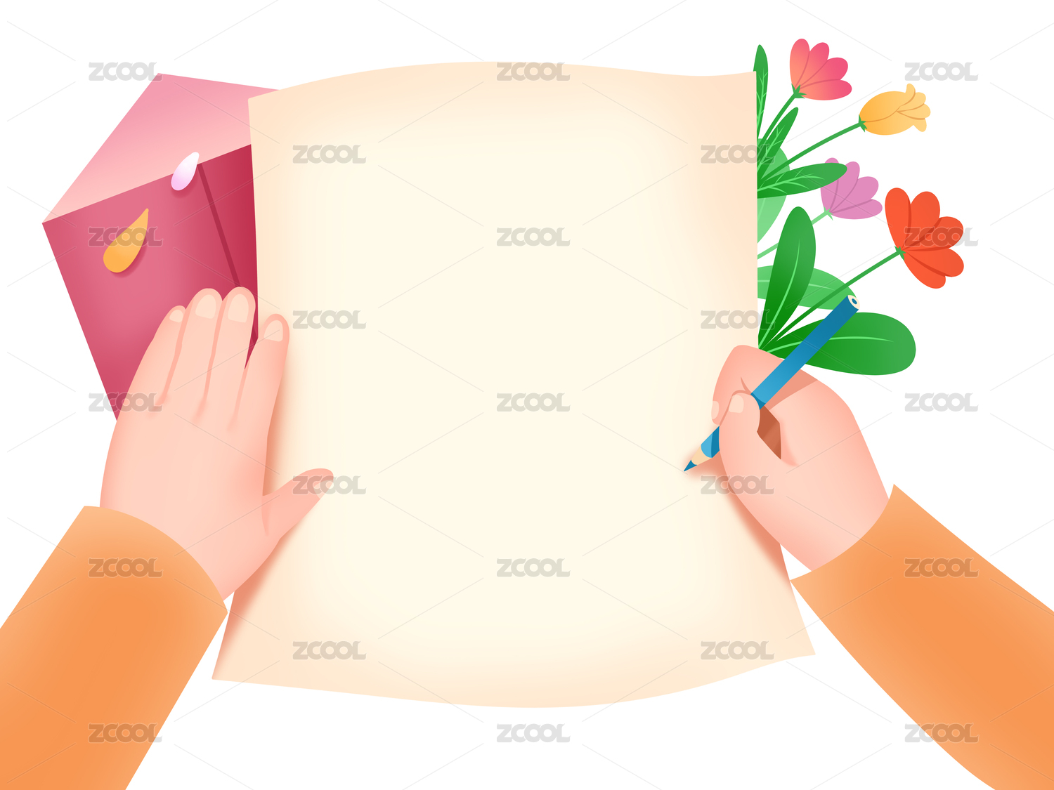 白底手托信件插圖